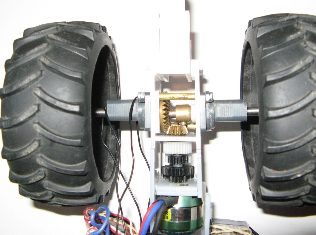 Les demis-ponts AV et le ponta AV sont taillés dans la masse (plastique PVC), la boite de réduction est basées sur de la récupération de pignons d'imprimantes (+) .