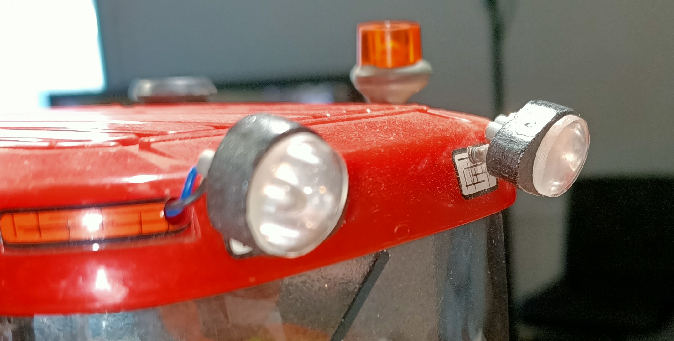 relevage ar , eclairage + phares de travail , + prise pour outils traîné , bruiteur , j'ai refais tout le chassis en carte plastique