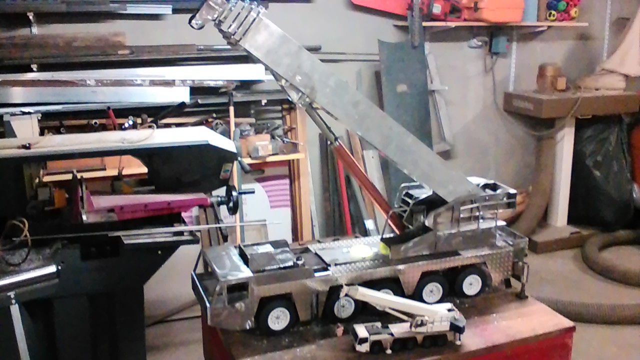 Voilà un peut des nouvelles de ma terex ac 200 , j ai pofiner les stabilisateur les platine au bout du stabilisateur sont démontables et assez satisfait du rendu , j ai fait des améliorations sur mon vérin de télescopique à vis sans fin car mon moteur aval un peut de mal à la faire tourné pour permettre de faire sortir les 2 derniers éléments , la carrosserie en tôle alarmé alu est posé , et la je bien de me lancer dans mon hydraulique avec la conception de mon vérin et du réservoir , j attend maintenant de recevoir mon distributeur leimhbac ,les flexibles et raccords pour finir le montage voila les dernière photos