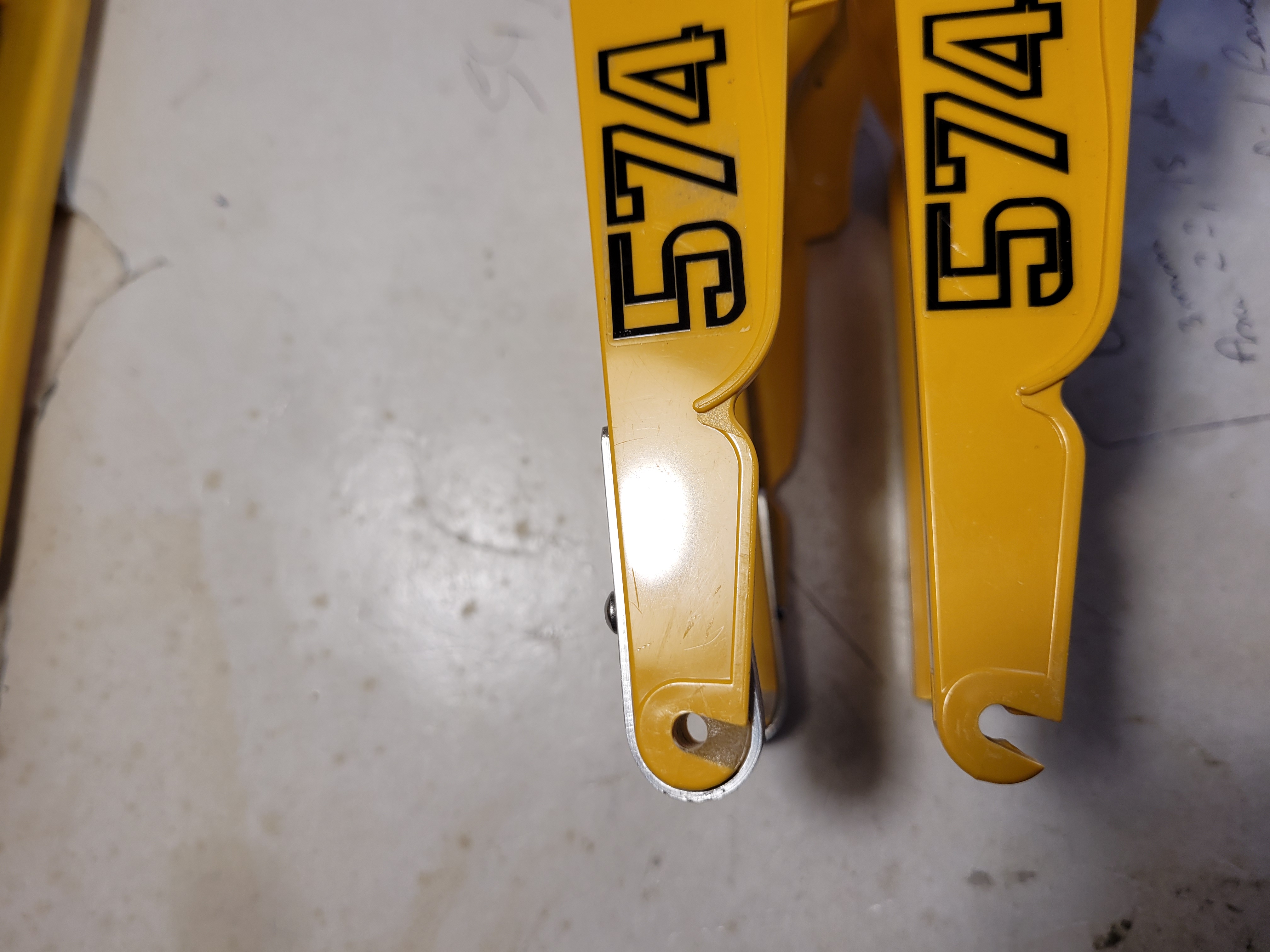 Voila pour le 574 le bras est fini, corde a piano de 2mm + epoxy dans toute les parties creuse du bras, plus que quelques retouche peinture, la sa pousse bien, sa lève bien, godet bien rempli...je vais juste changer les 2 vis du bras pour mettre des têtes fraisées