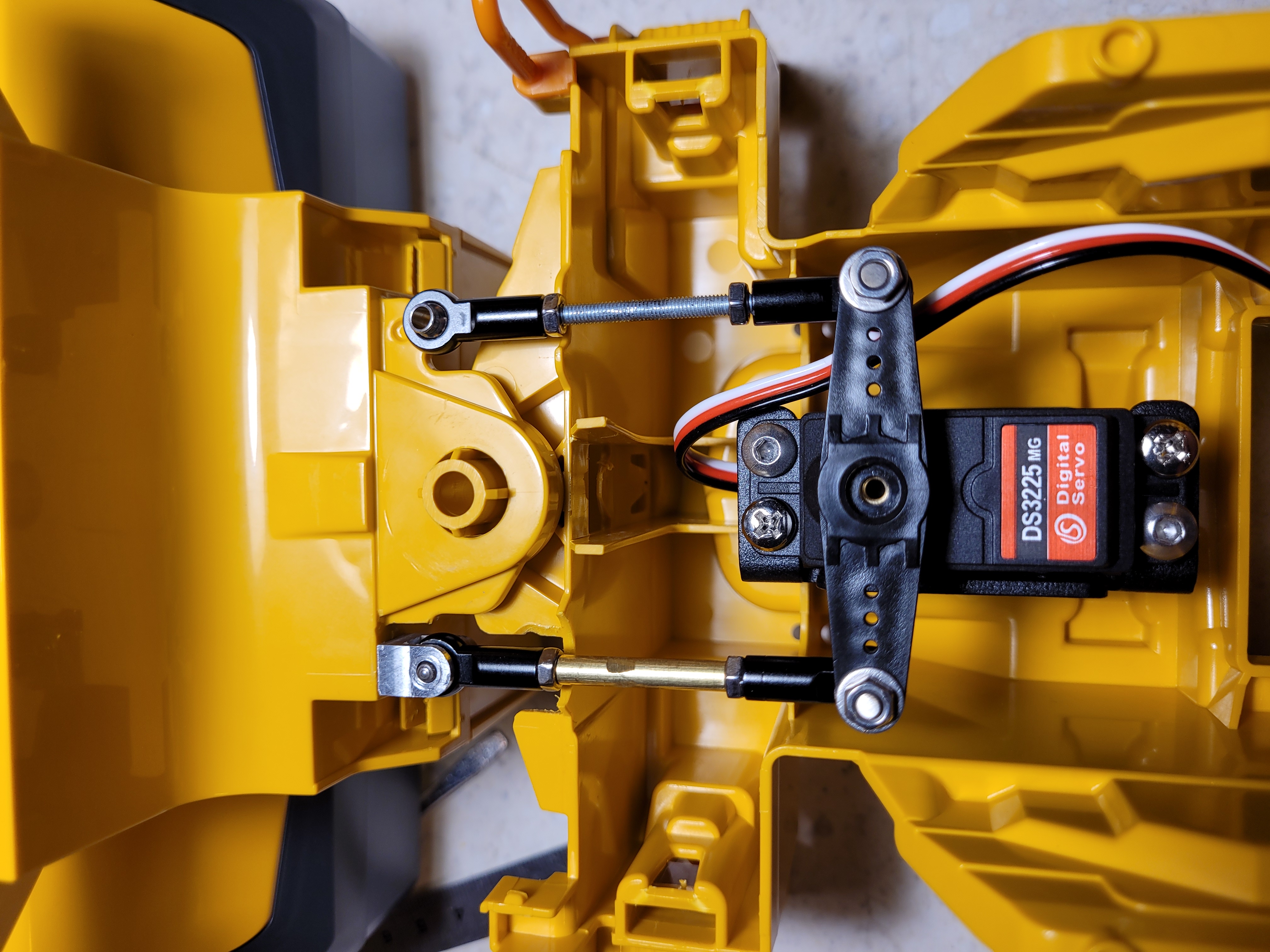 pour la direction j'ai opté pour un servo de "25 kg" qu'il me restait, peu être en hydraulique plus tard....