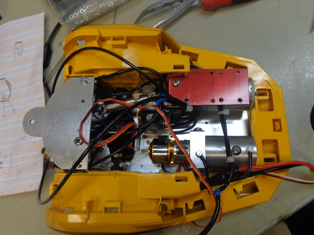 hier avant le champagne j ai fait ça: installation du servo et des cable du blocage de diff je bloque les deux diff de la "remorque" ça devrais suffire et je garde la direction.