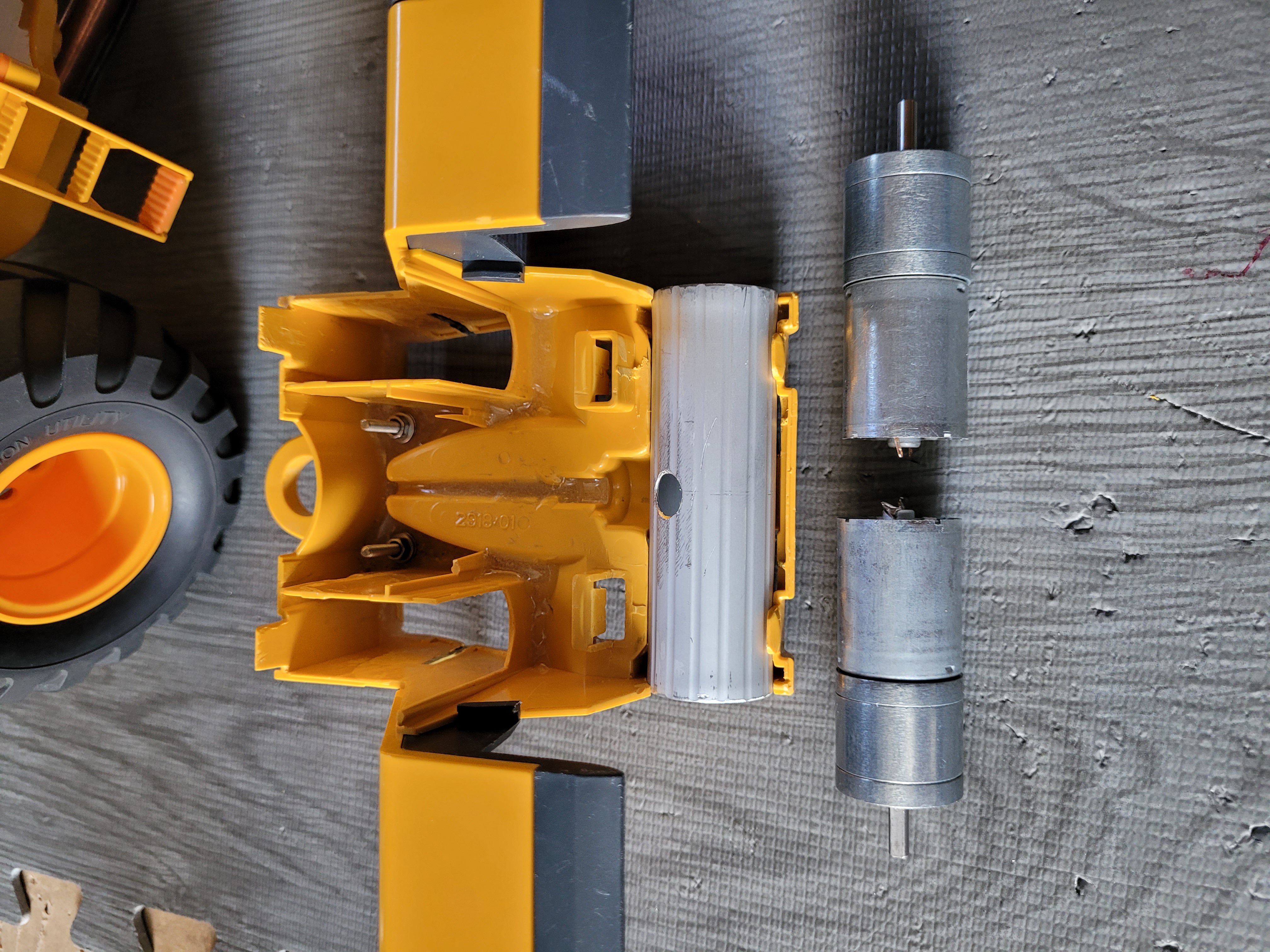 Puis 2 moteurs de 100 rpm de 25 comme sur mon Liebherr 574 feront l'affaire je pense et l'effet différentiel dans les virages...