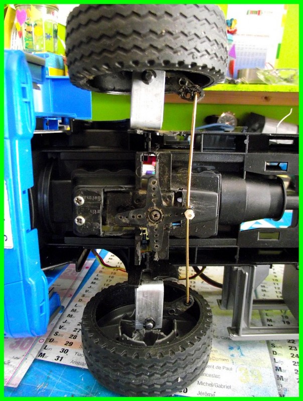 c'est vrai que je l'ai fait avec les moyens du bord et des vieilles carcasse de voiture rc !!! bon sa reste rudimentaire comme montage mais c'est le premier