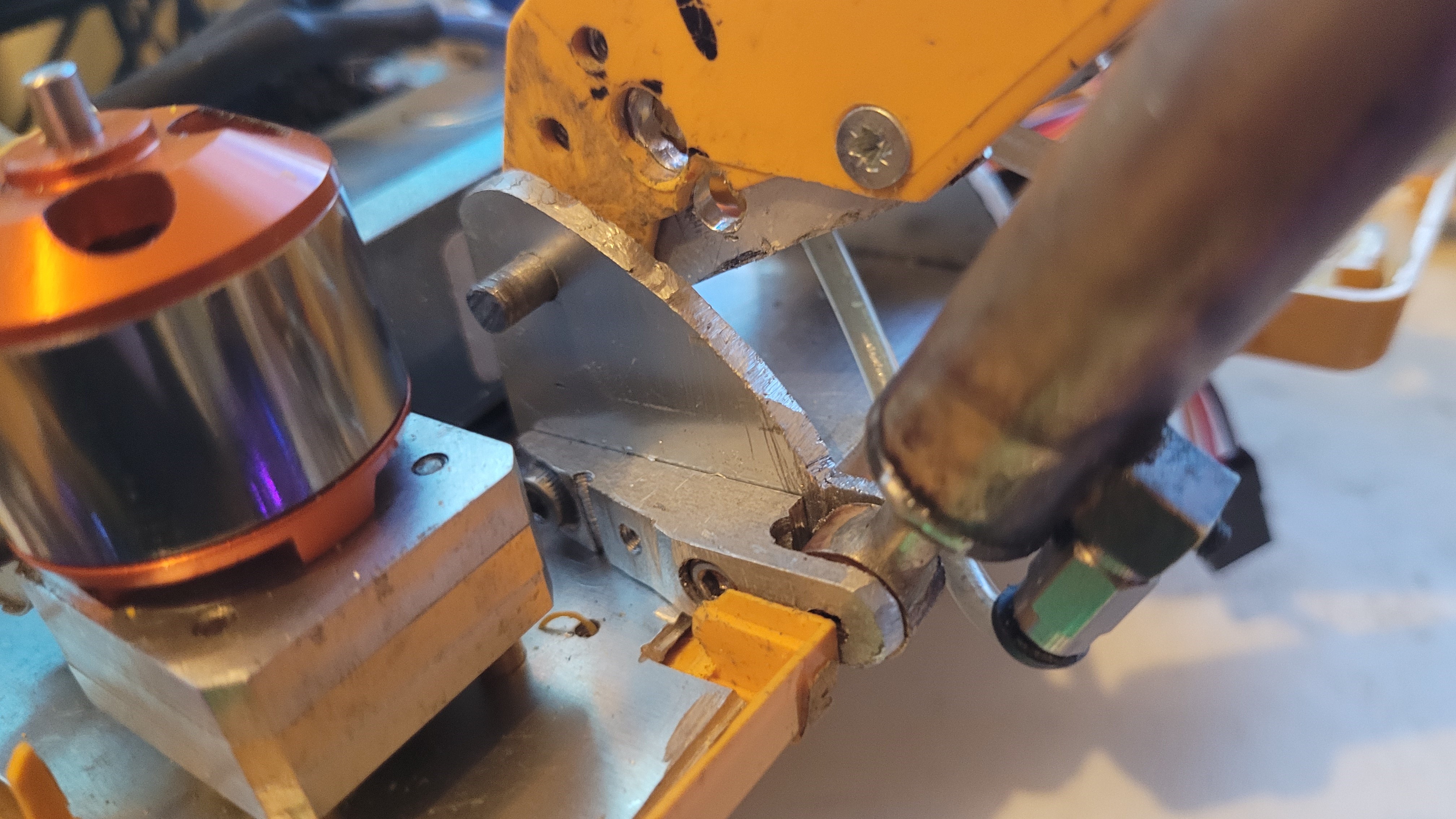 Oui, je n'ai qu'une petite fraiseuse qui n'arriverait jamais à faire cette pièce en un bloc et en plus elle est tombée en panne, le moteur est cramé. Il faut que je le change. La grosse fraiseuse est dans les projets, mais pas encore achetée par manque de place dans l'atelier. Donc lime, scie, huile de coude et dremel