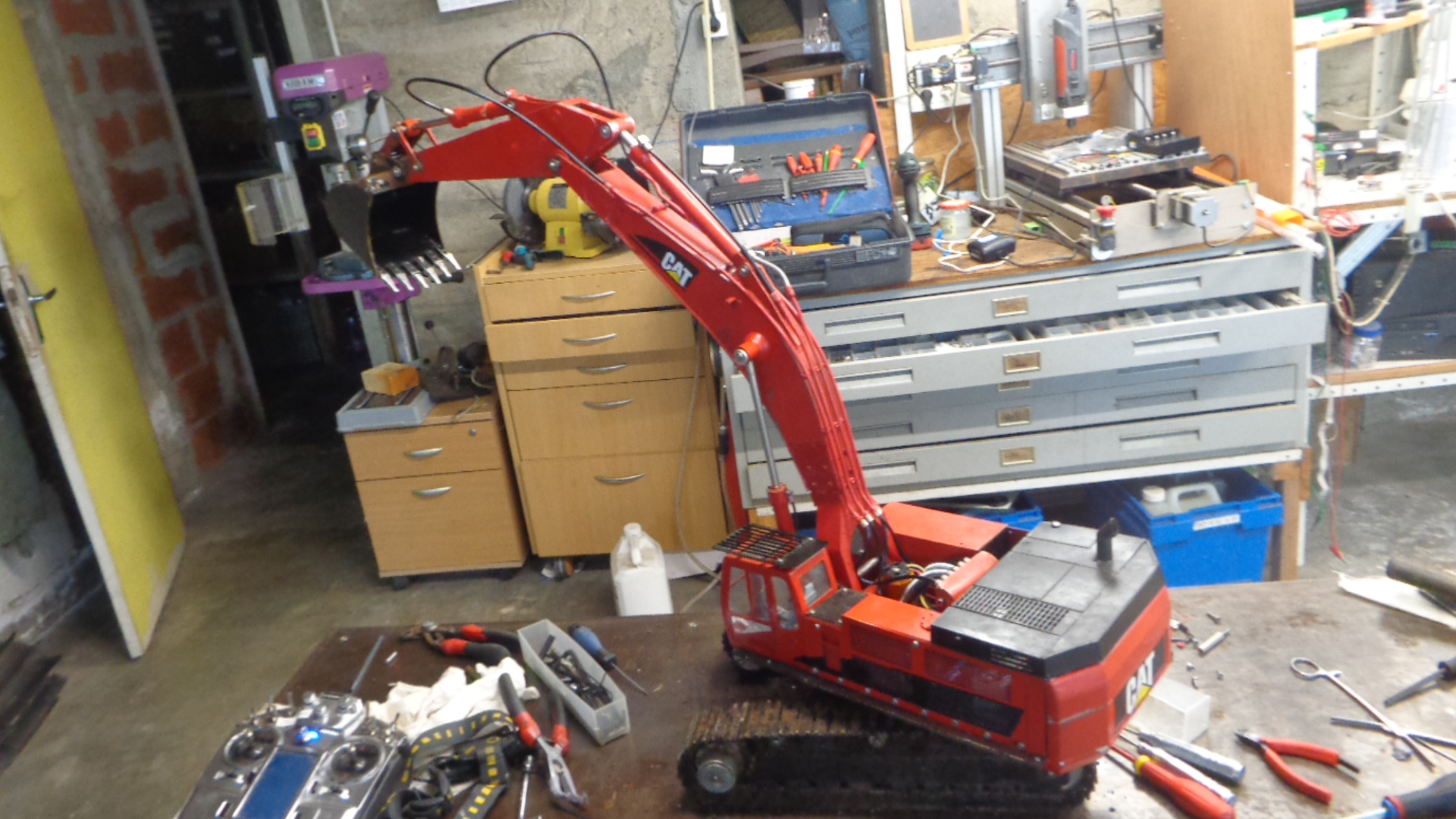 j'ai tout remonté sans régul mais avec une nouvelle soupape a pointeau conique et ça marche bien es distri sont aussi bien plus étanche que les magom. le bras reste en l'air et il n'y a pas de débit de perdu donc la pelle est très nerveuse même trop mais bon c'est plus simple de faire moins que plus. j'ai mis deux ventilos pour bien refroidir les servos et les batterie.