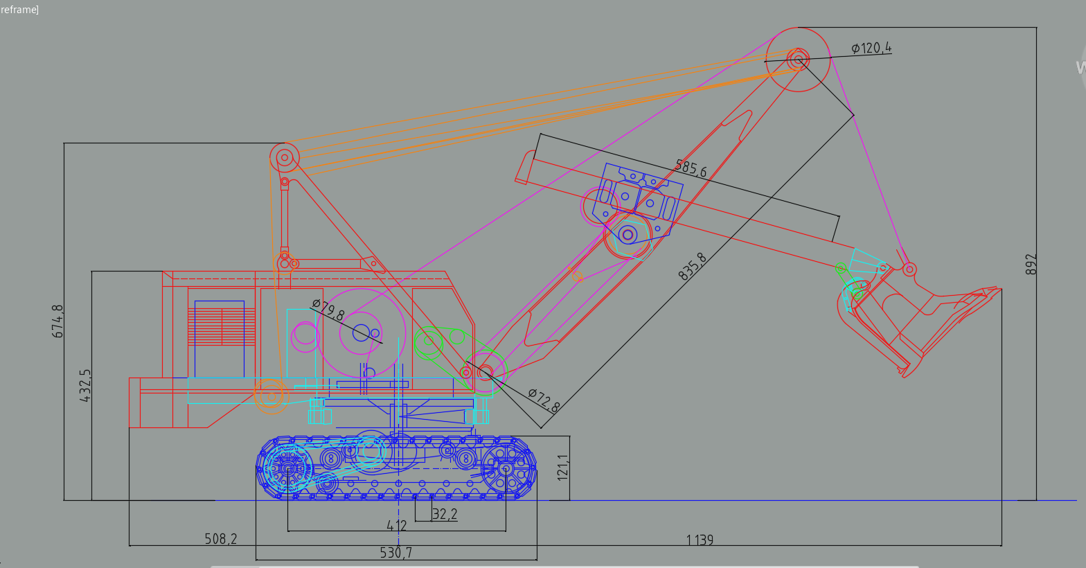 Hauteur totale de la fleche a 45° 900...