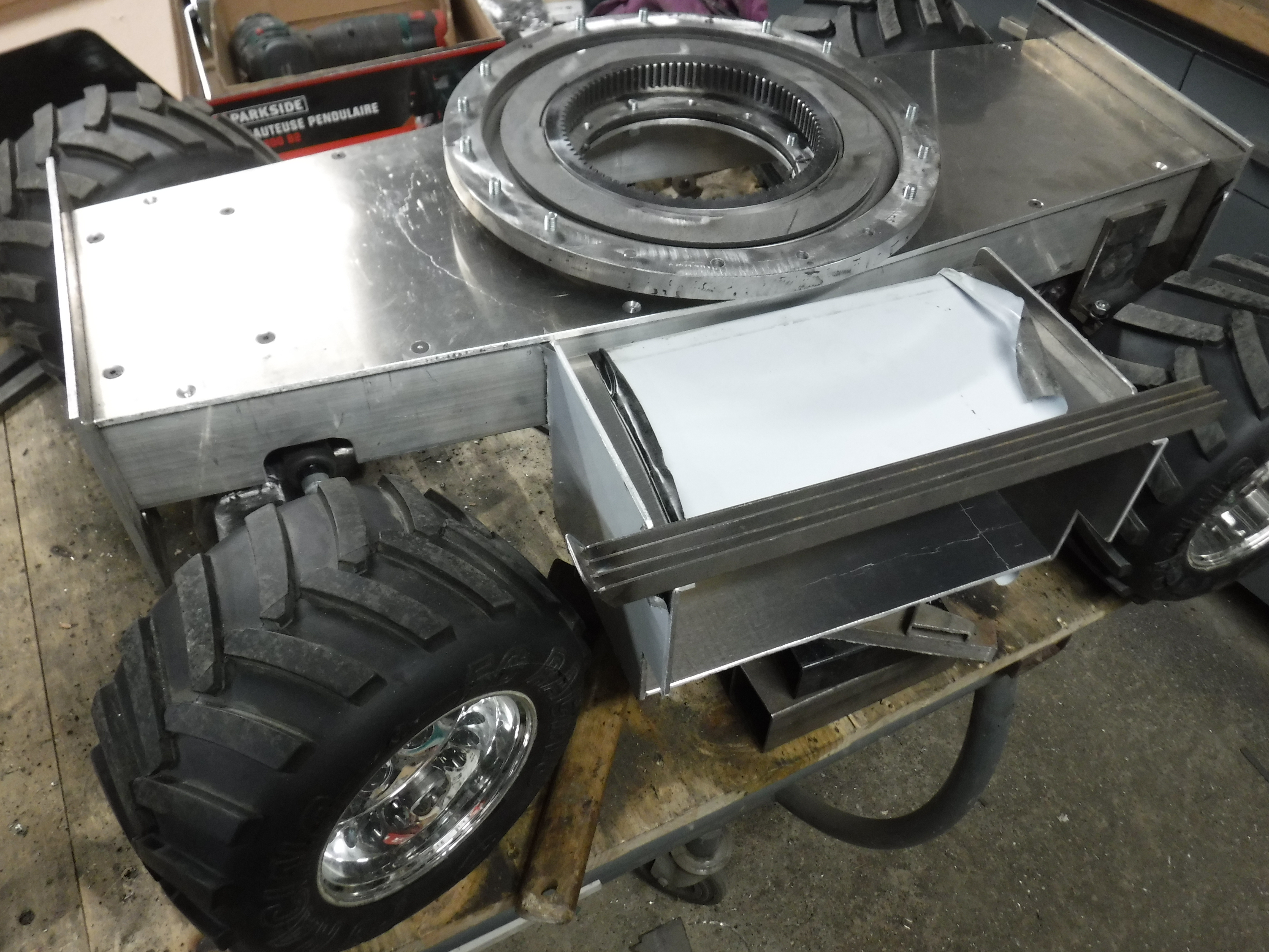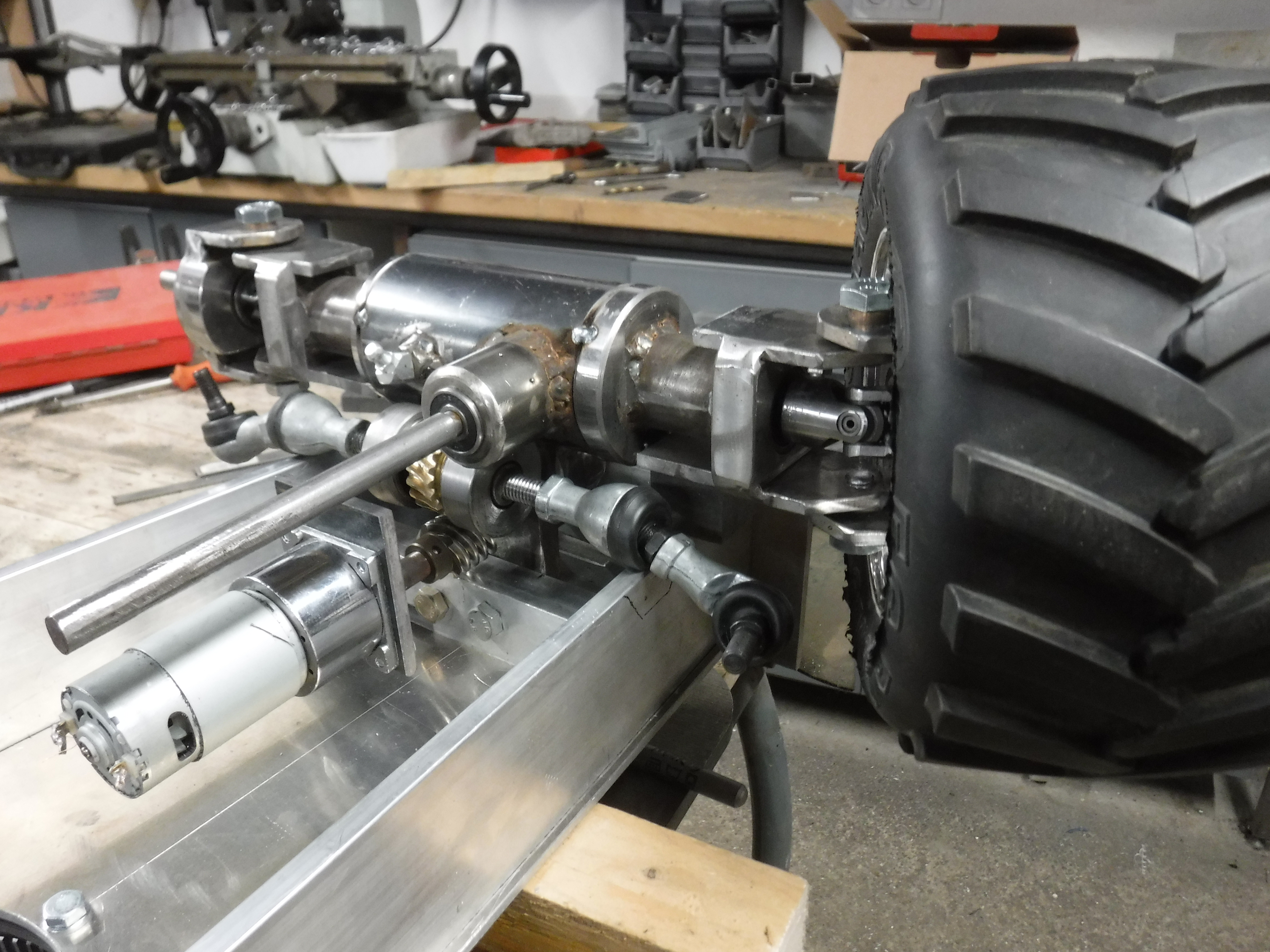 Ensuite une fois les ponts terminés il fallait trouver quelle motorisation mettre, j' étais parti au départ pour mettre un moteur d essuie glace de voiture car très bonne force pour la taille de l engin que je réalise .