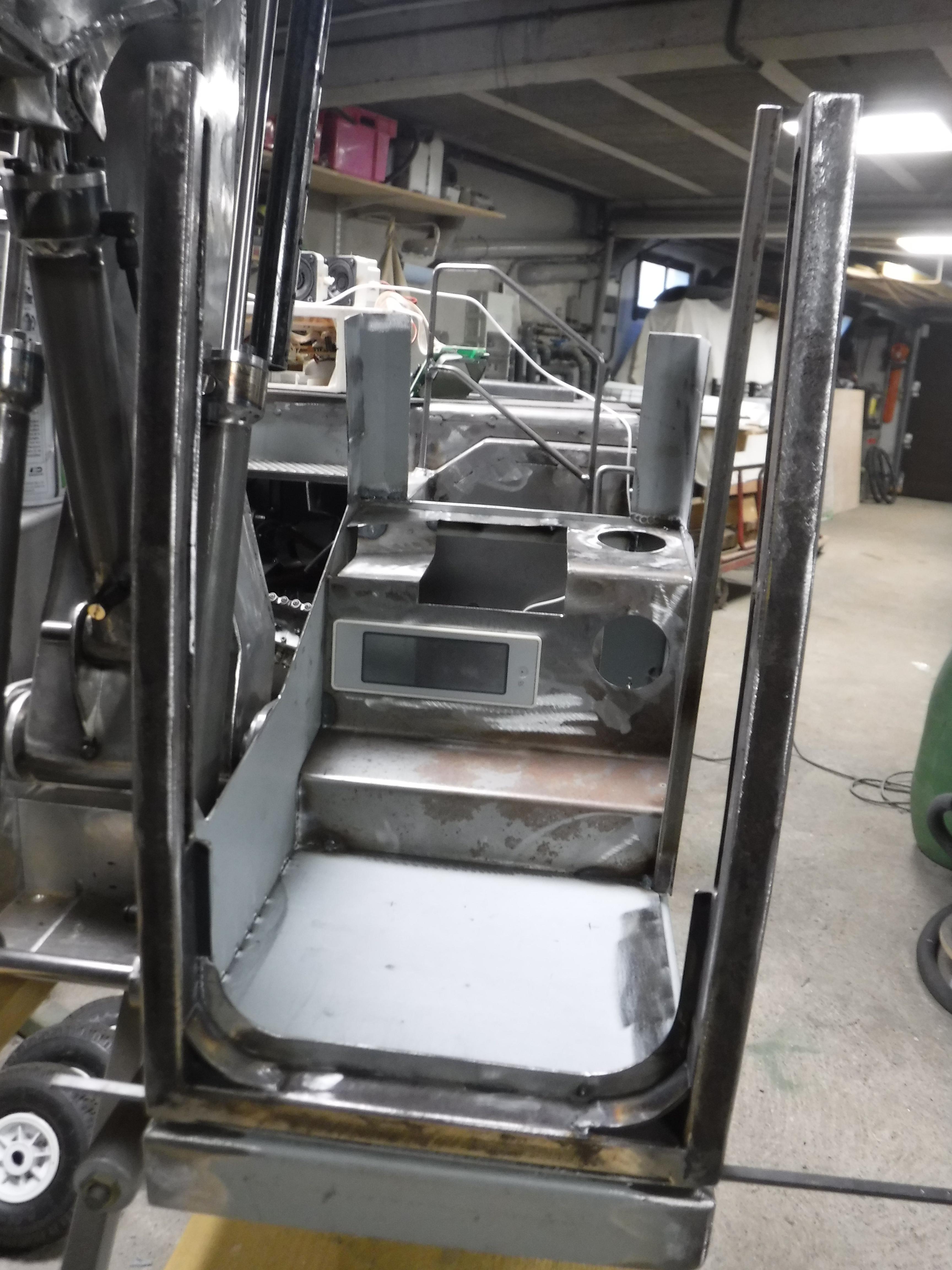 J ai ensuite attaqué la cabine histoire d i mettre un poste de pilotage mais j est aussi voulu y integré un peut de confort histoire de me raproché au plus pret de ma realité de chaque jour car pour ceux qui l on peut étre oublié je réalise la pelle que je conduit chaque jour a part en se moment avec se putain de virus le covid 19 MERCI LES :merci: :merci: :merci: