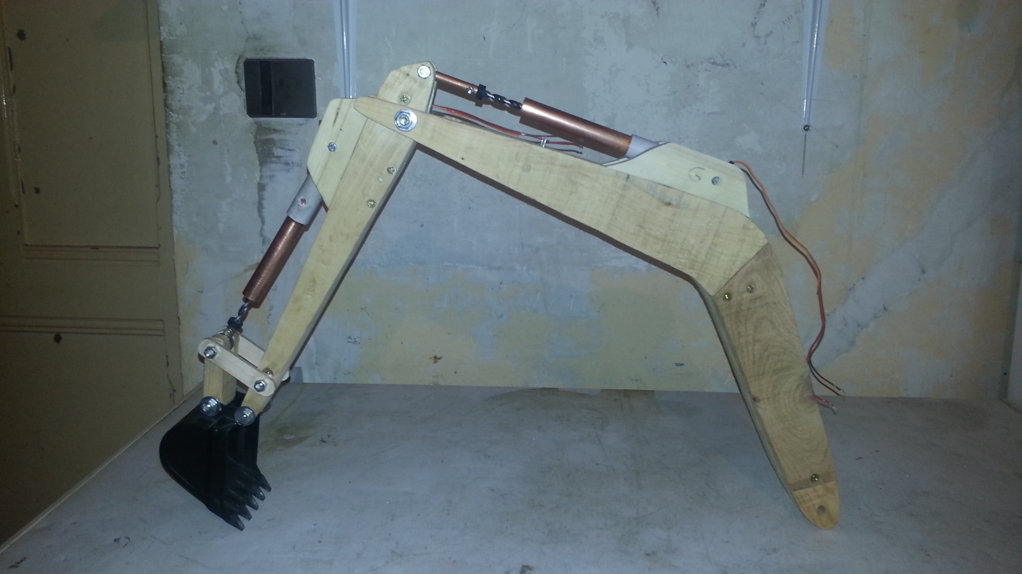 Alors j'utilise des servos. pour la flèche c'est un 33kg, le balancier un 20kg et le godet un 13kg.