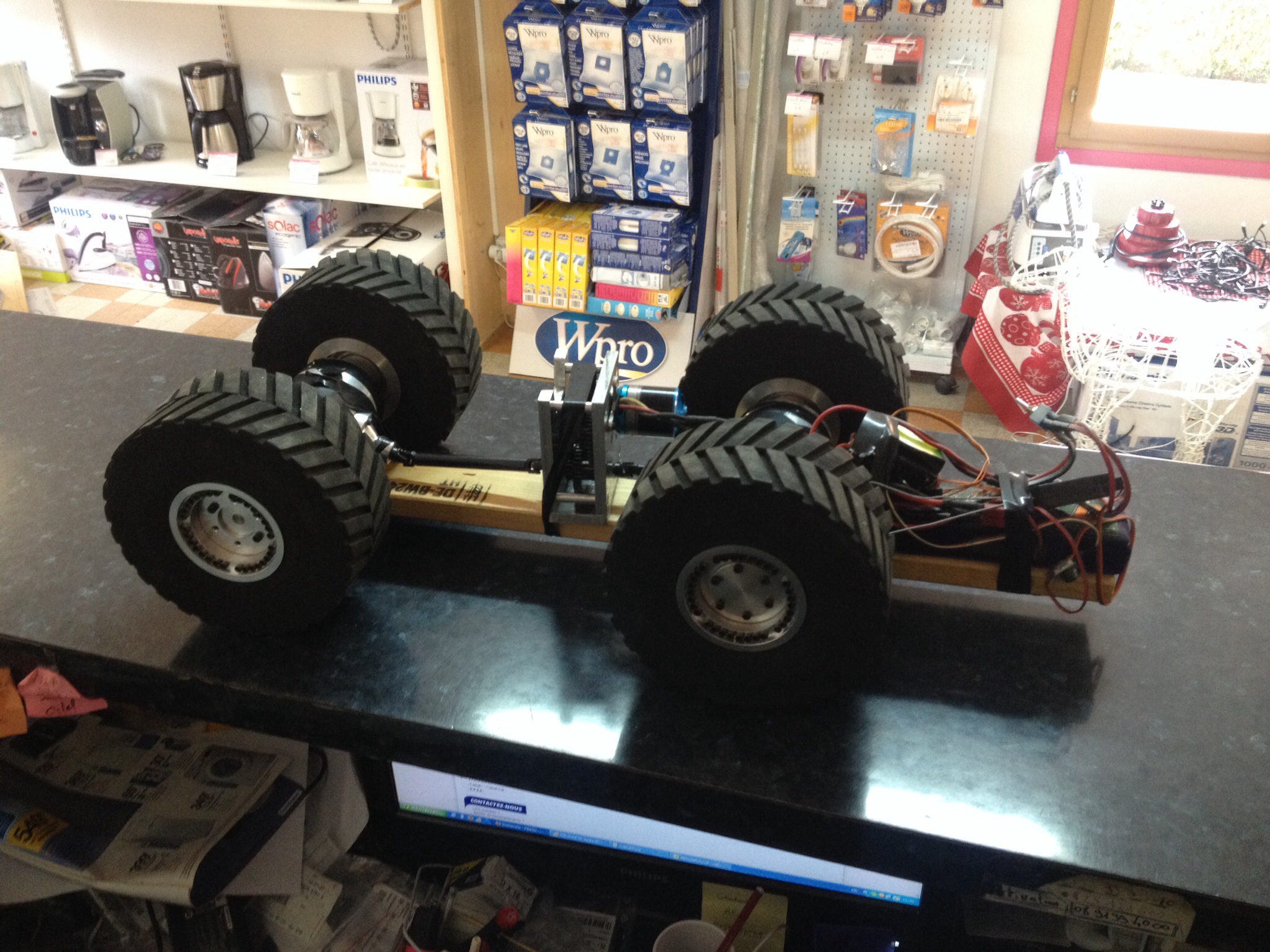 Petit montage a la ... Pour voir si sa fonctionne avec mon moteur de transmission et bien oui sa fonctionne !!!! Mais du coup mon moteur est trop lent du coup l engins ce traine mais du coup a une sacre force ! Donc je sais pas a voir quand elle sera fini peut être changer le moteur pour plus de kv ^^