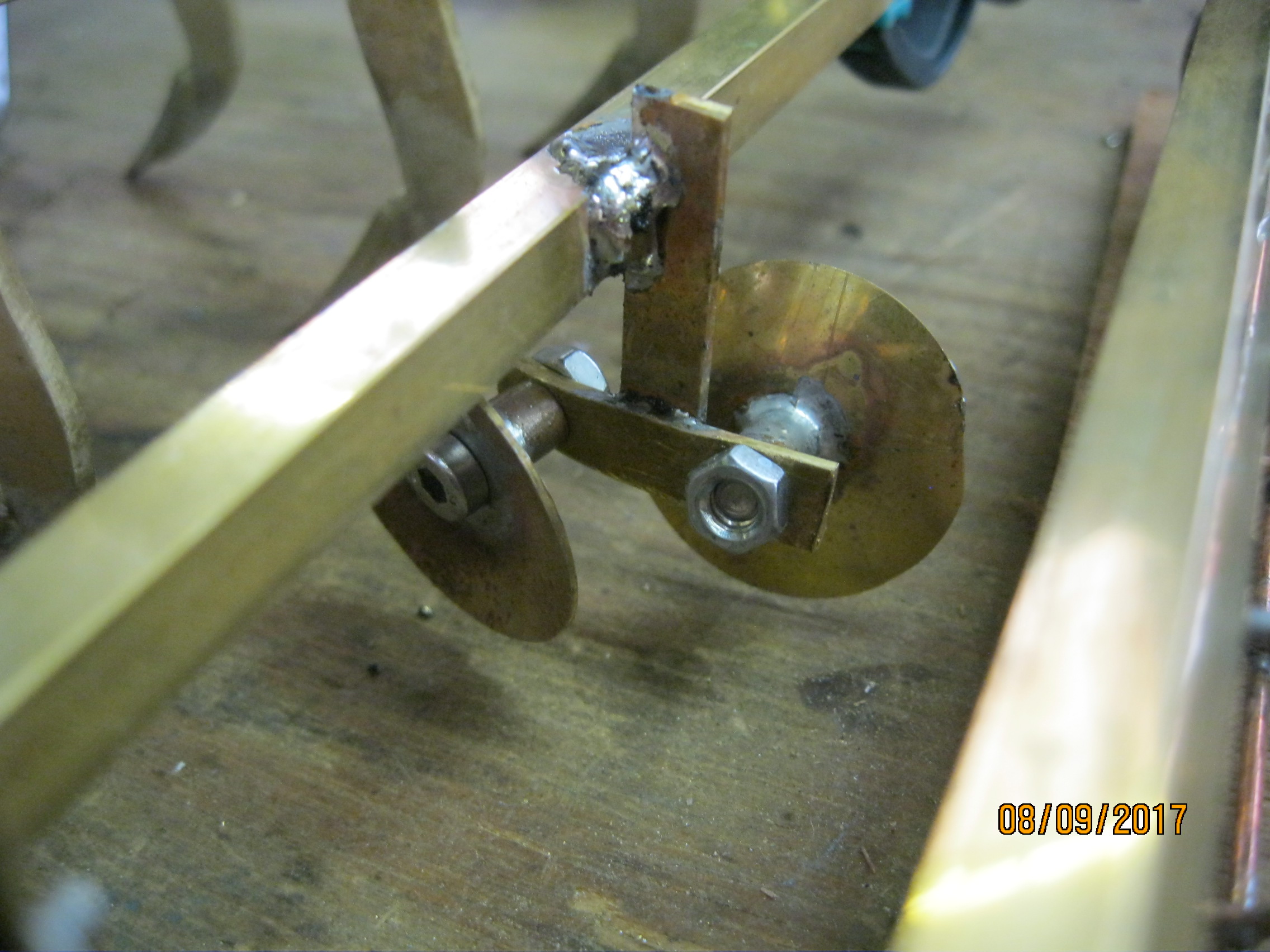 oui les disques tournent, l'écrou me sert (pour les essais) de contre écrou, le support étant fileté 3mm, par la suite je vais couper à ras la vis, et la souder ou coller