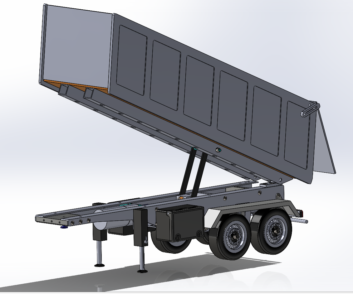 Pas mal du tout la conception. Mais l'idée c'est de pouvoir changer la configuration du châssis ? plateau, grumier ou benne sur le même châssis ? parce que ton système de levage est dans les longerons, donc tu devras tout redémonter pour la benne