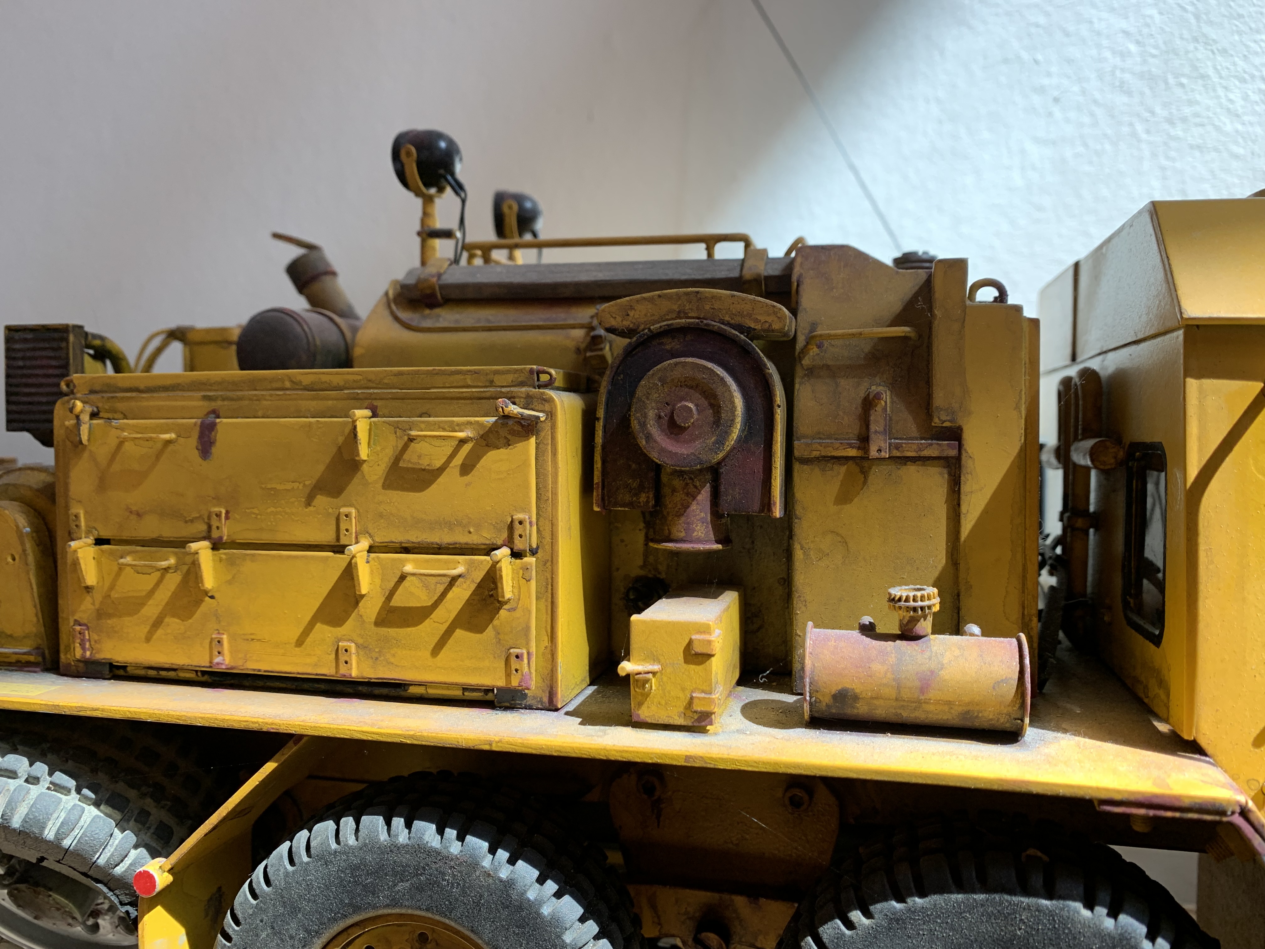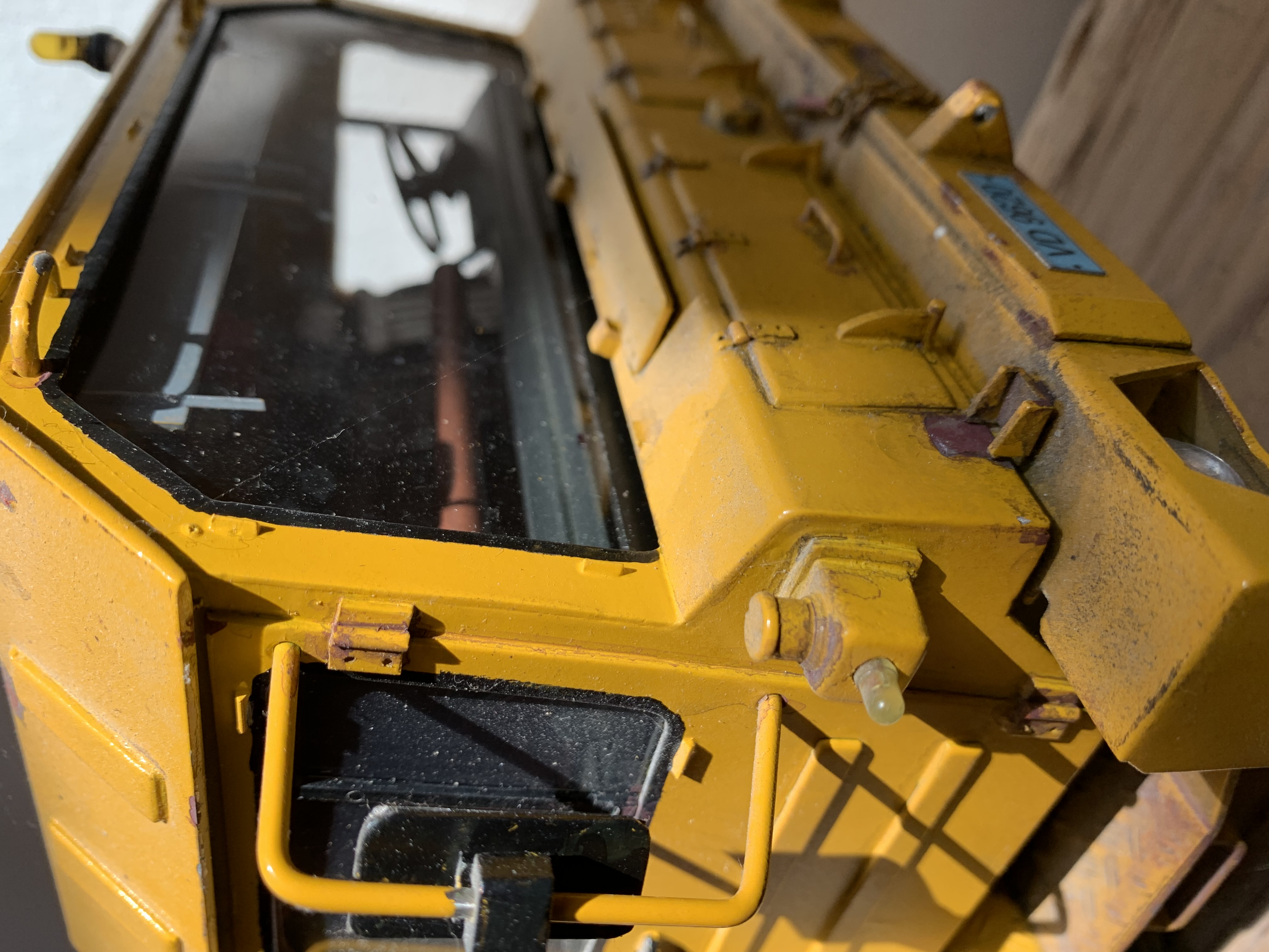 Recette simple, mais efficace. Prendre un modèle de camion/engin de chantier, l’utiliser pendant 4 ou 5 ans , ensuite le laisser prendre la poussière pendant une vingtaine d’années. Et dire que je m'étais cassé la tête pour faire des patines réalistes sur ces modèles…….