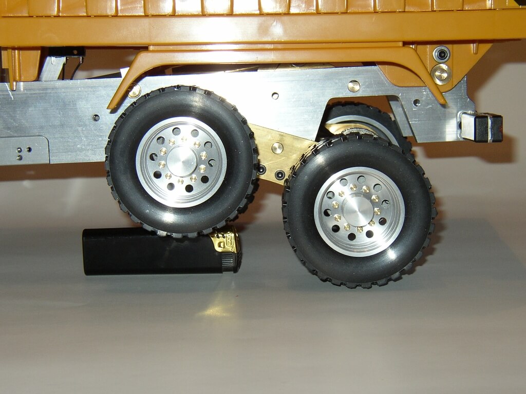 Ce que je trouve pas génial c'est que l'essieu avant est fixe, mais si tu monte ce pont arrière qui est inclinable dans tout les sens tu dois monter un essieu avant fixe sinon le camion bascule...