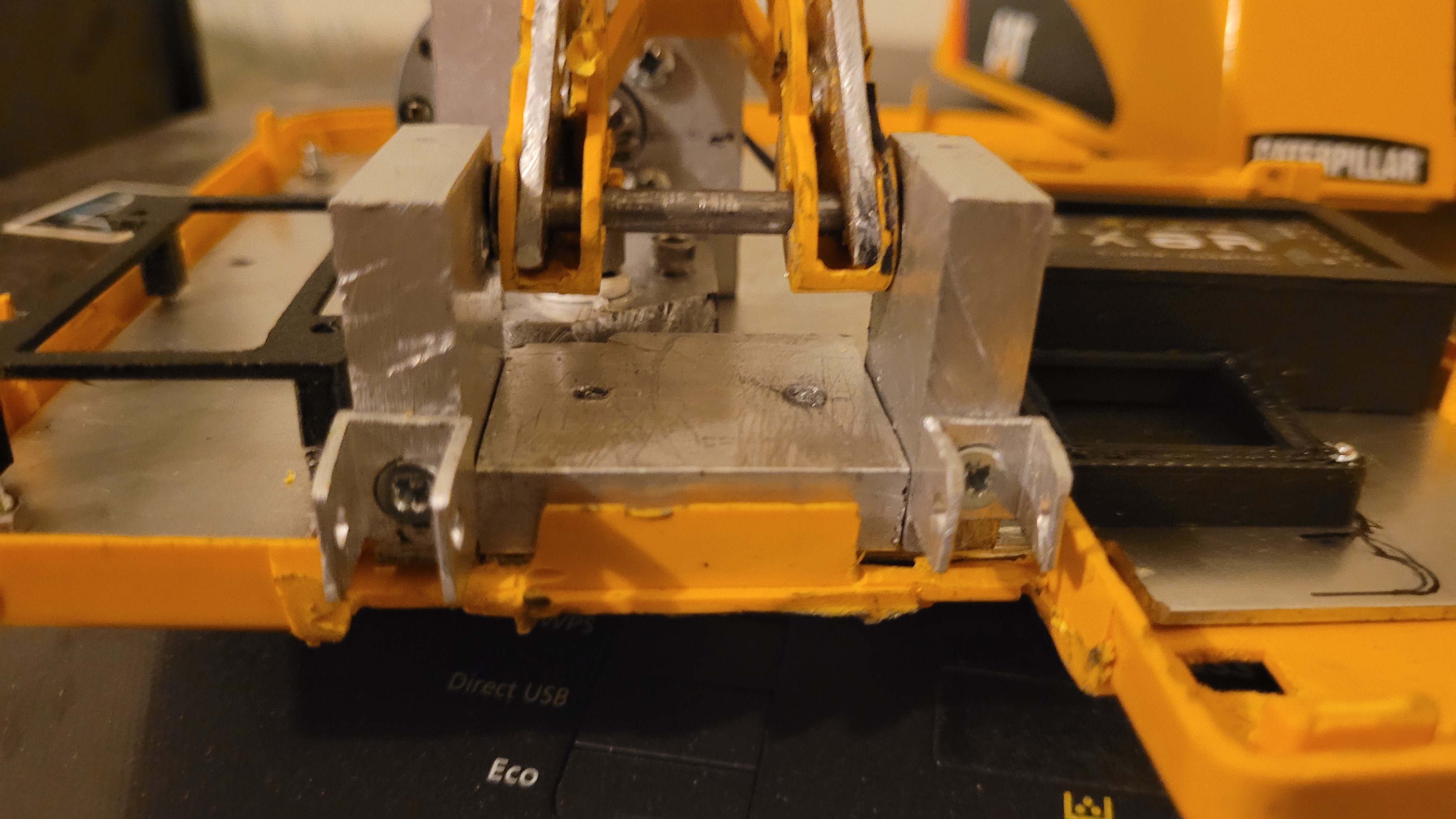 Je suis en train de convertir une pelle à pneu bruder Cat M316 en version RC hydraulique. Je mélange lme métal et l'impression 3D.
