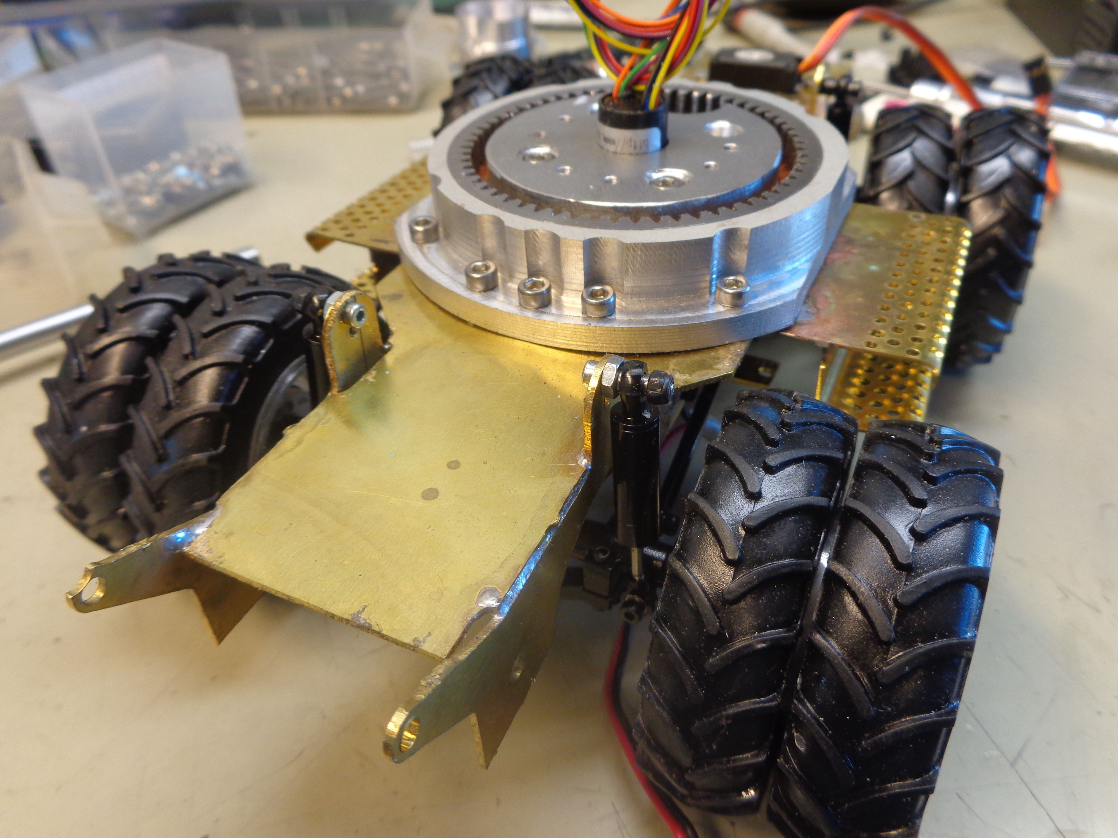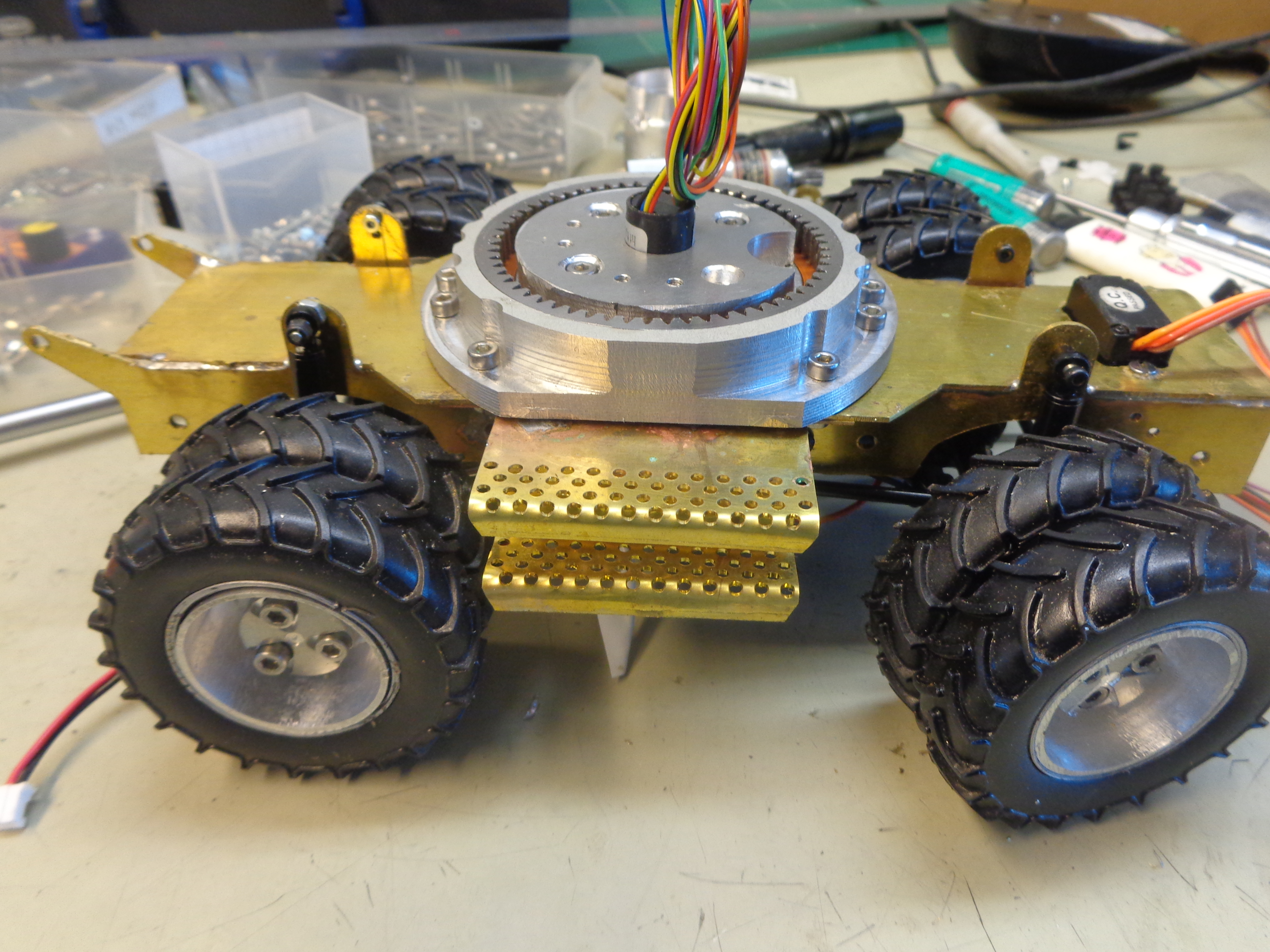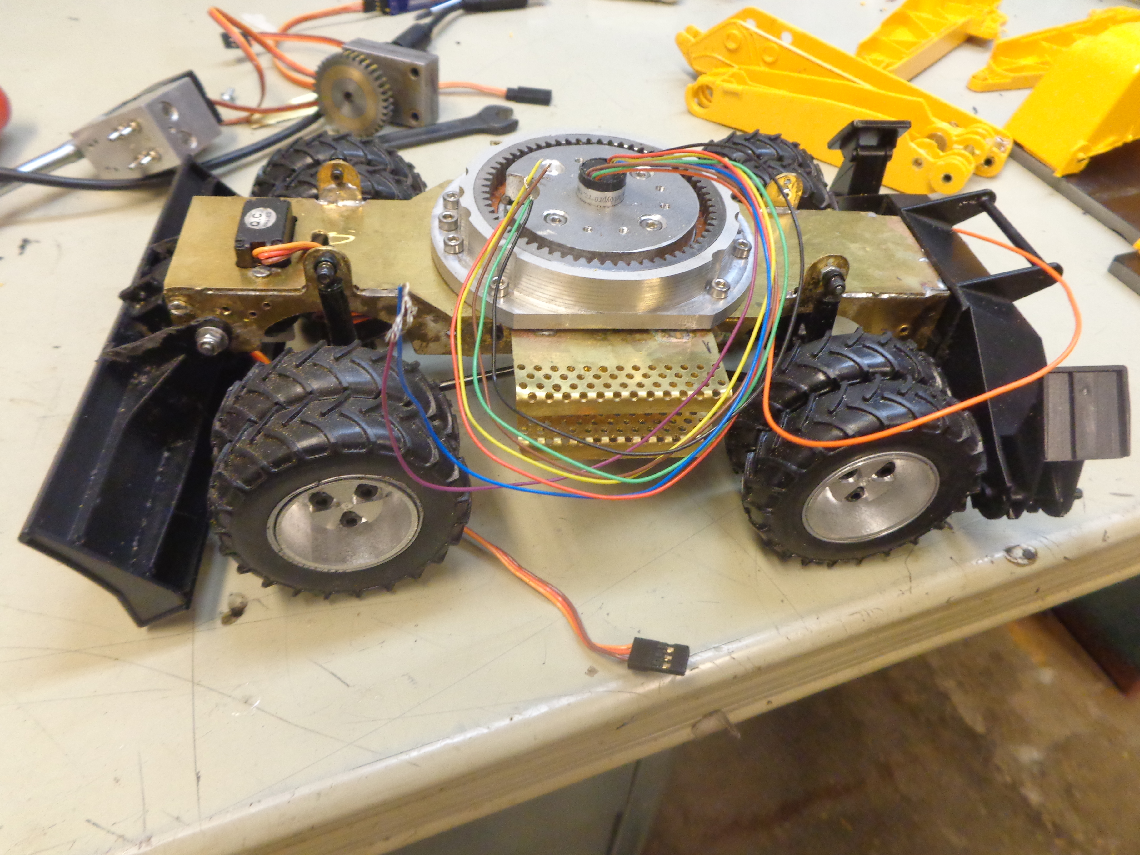 j'ai fait un prototype de chassis de tourelle le but est de Mettre au point l'implantation de tout les éléments. pour faire le prototype j'ai utilisé du trespa mais le définitif sera en alu.
