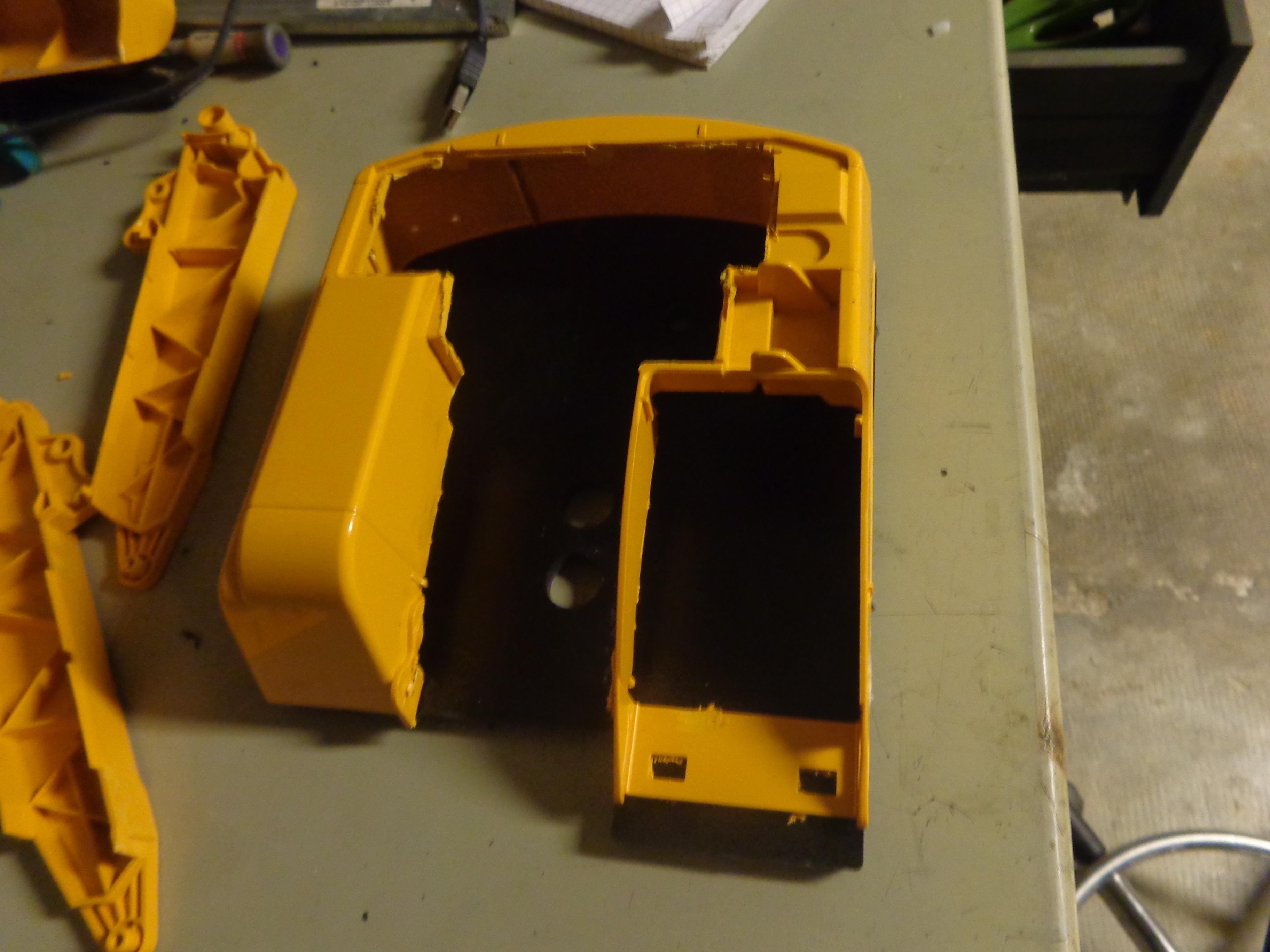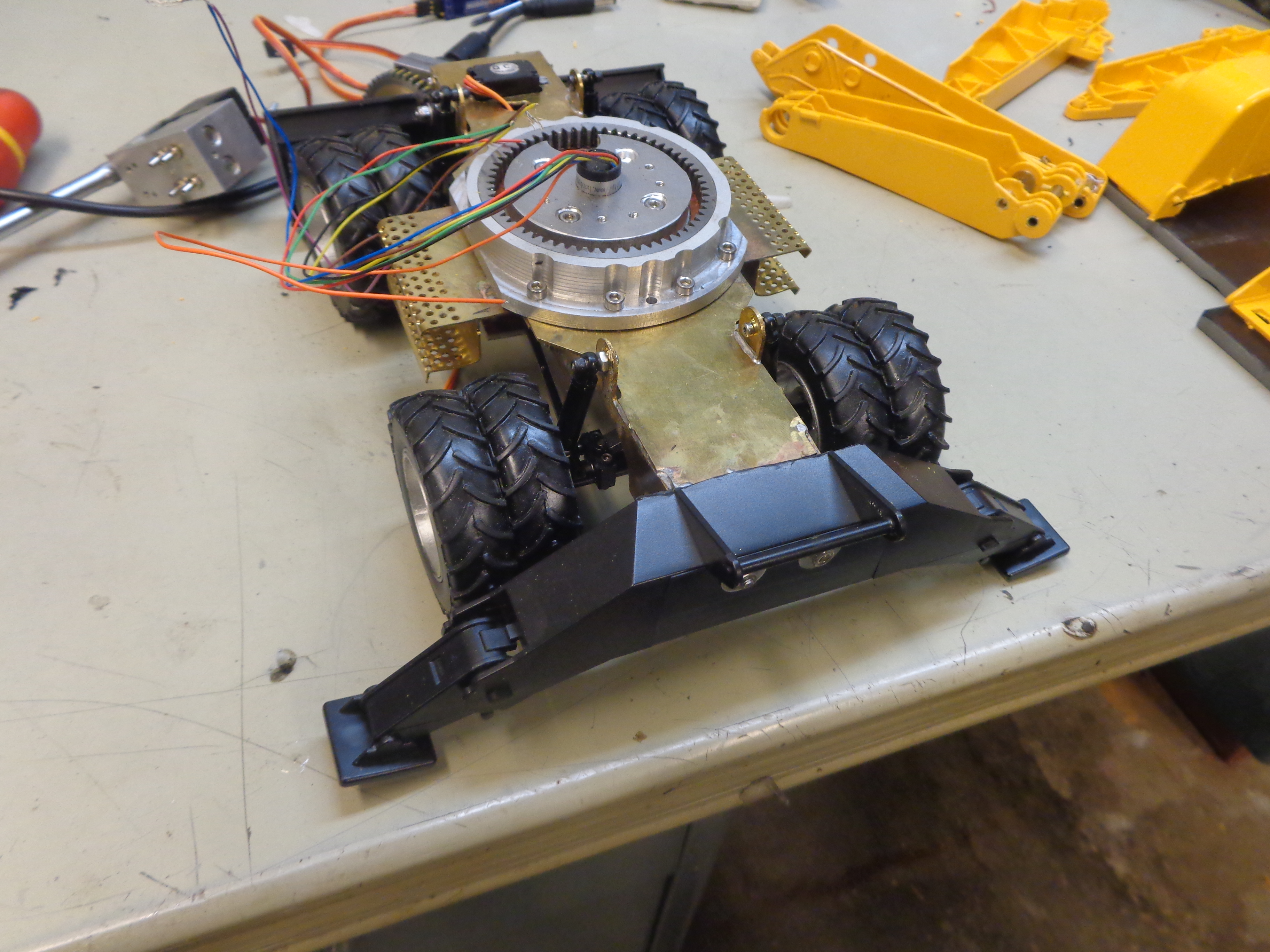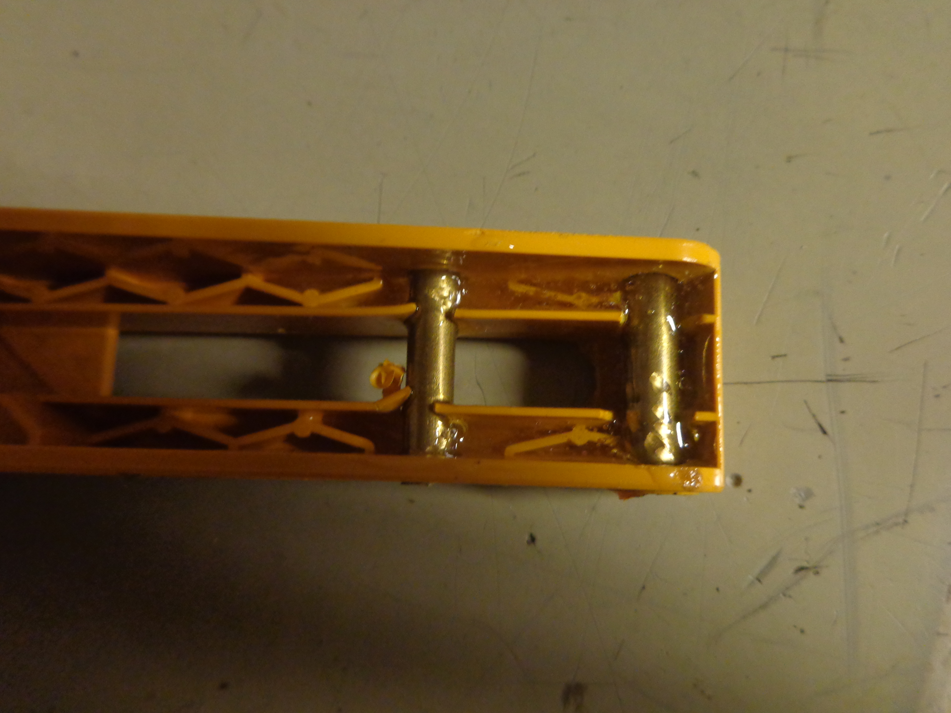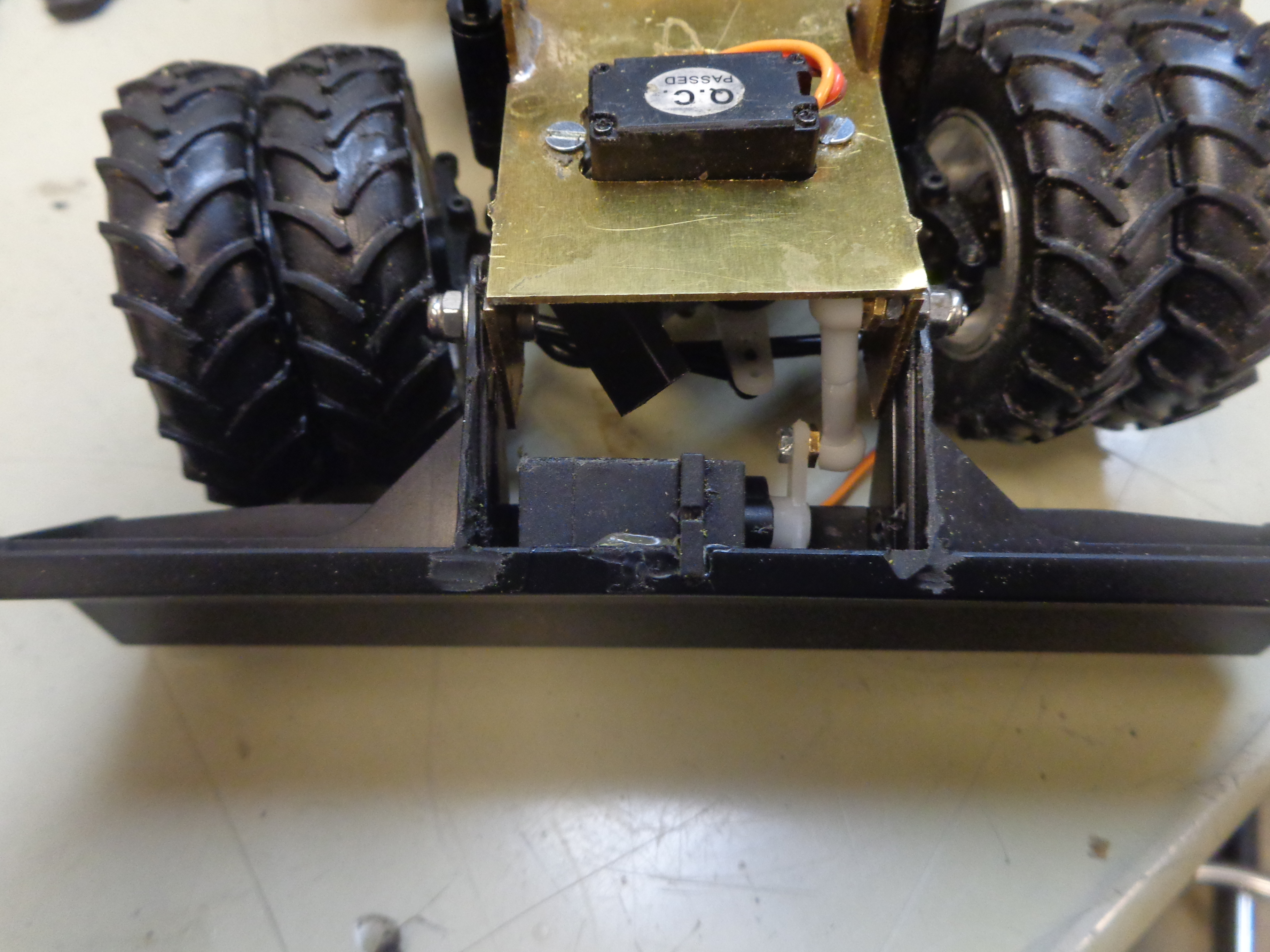 voici les nouvelles avancé: j'ai dépouillé la bruder et collé des axe en laiton dans le pvc avec de la résine époxy