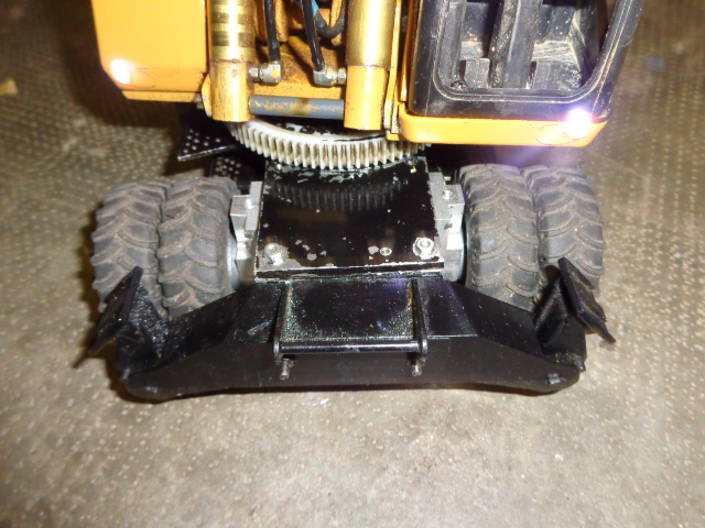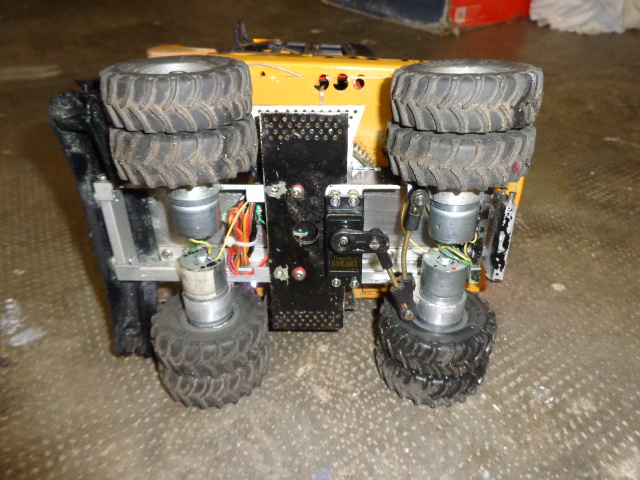 je suis en train de travailler a la motorisation4X4 voici un moteur monté sur les roues. c'est les moteurs que j'avait destiné a mon chargeur ils seront suffisament puisant pour la pelle les roues sont plus petites