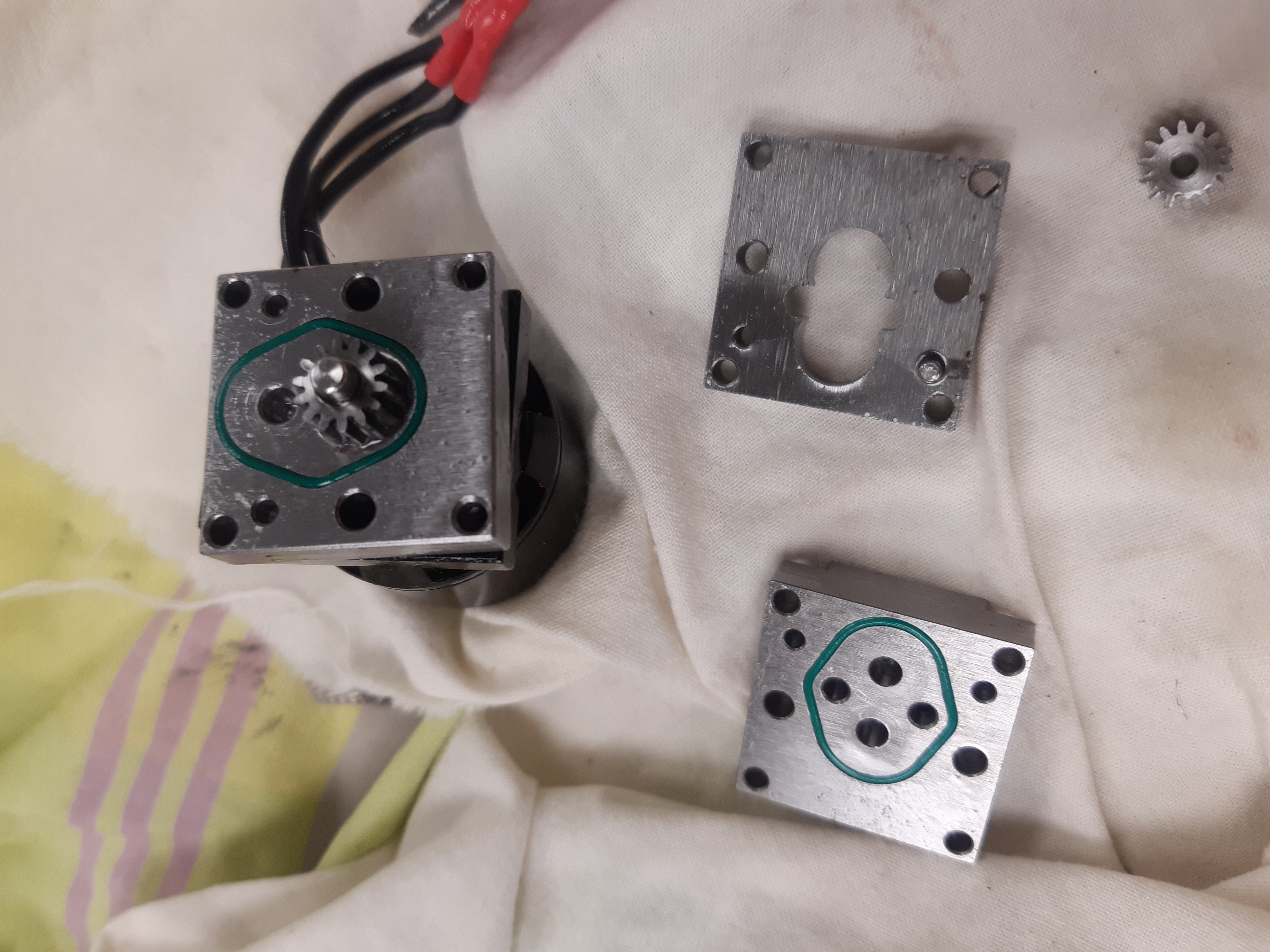 j ai repercés les entré et sortie en M5 pour plus de débit et refermé sans l'axe du pignon du coup le débit est bon la pression ne monte pas au dessus de 30bar. tu en penses quoi marc ? que le pignon n'est pas d'axe?