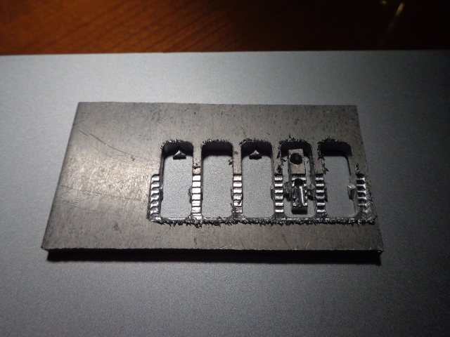 j ai usiné les dents du godet en faisage sur les deux faces.