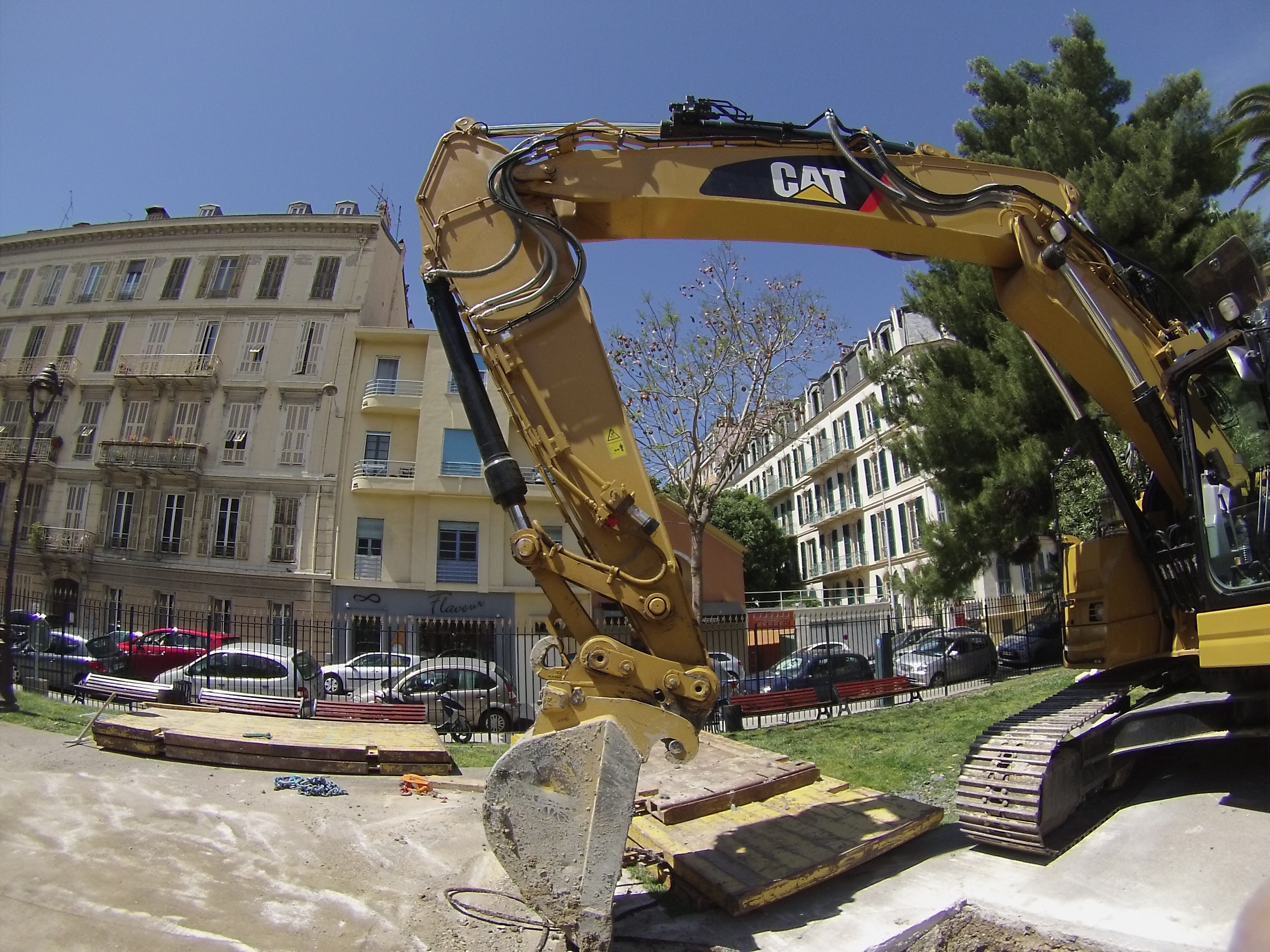le tram de Nice,sondage pour les archéologues la pelle a 520 heure
