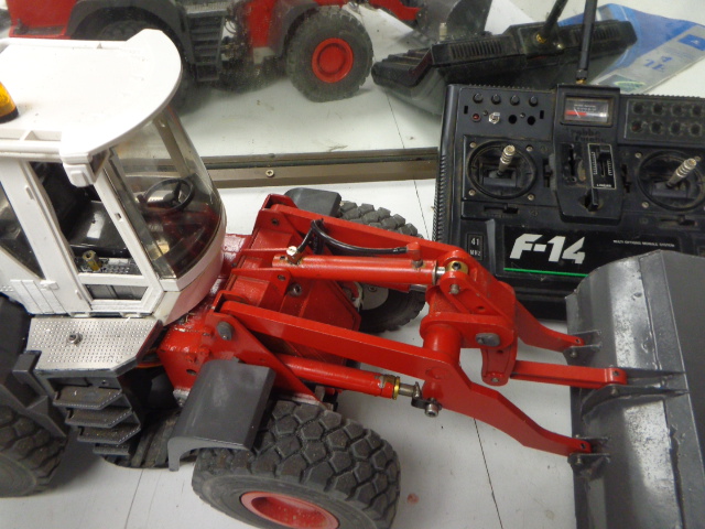 a l'avant j ai mis un servo pour le blocage du dif et le distributeur il faut que je finisse le montage de l hydraulique et que j'organise les composant dans le compartiment arrière. ça devrai rentrer. je me demande si je ne devrais pas acheter une autre radio plus moderne? mais quoi une I10 TURNIGY ça aurait été bien mais c'est intouvable la premiere je l avait acheter 85€ si j avais su c'est une palette que j'aurai acheté.