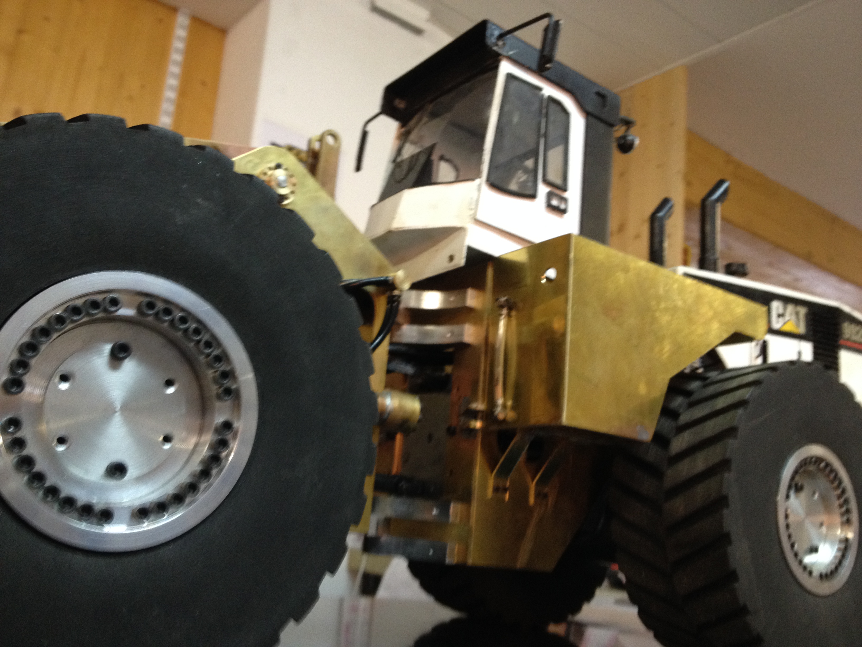 J ai utiliser entièrement du laiton en majorités du 2mm d épais des pneus plein très lourd (2kg pièces) et j en suis que a 23kg avec une estimation entre 27 et 28kg fini donc je me marre en voyant des engins en alu pesé au pif sans balance (:o)