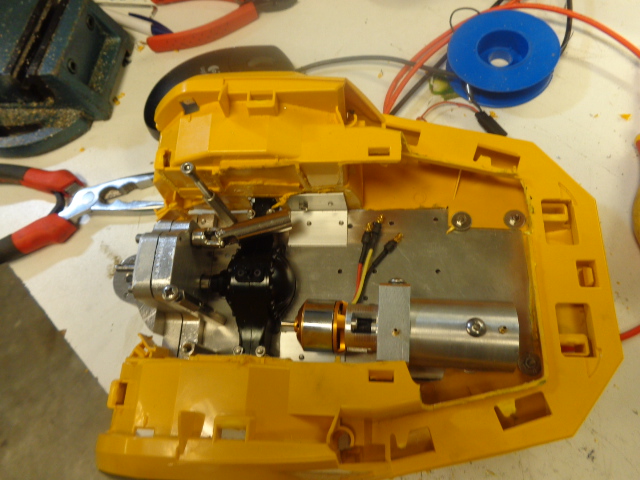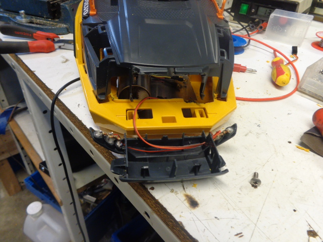 ce matin j ai démonté découpé et ajusté la cabine au chassis AV la calandre serra démontable pour changer les pack d accu rapidement.