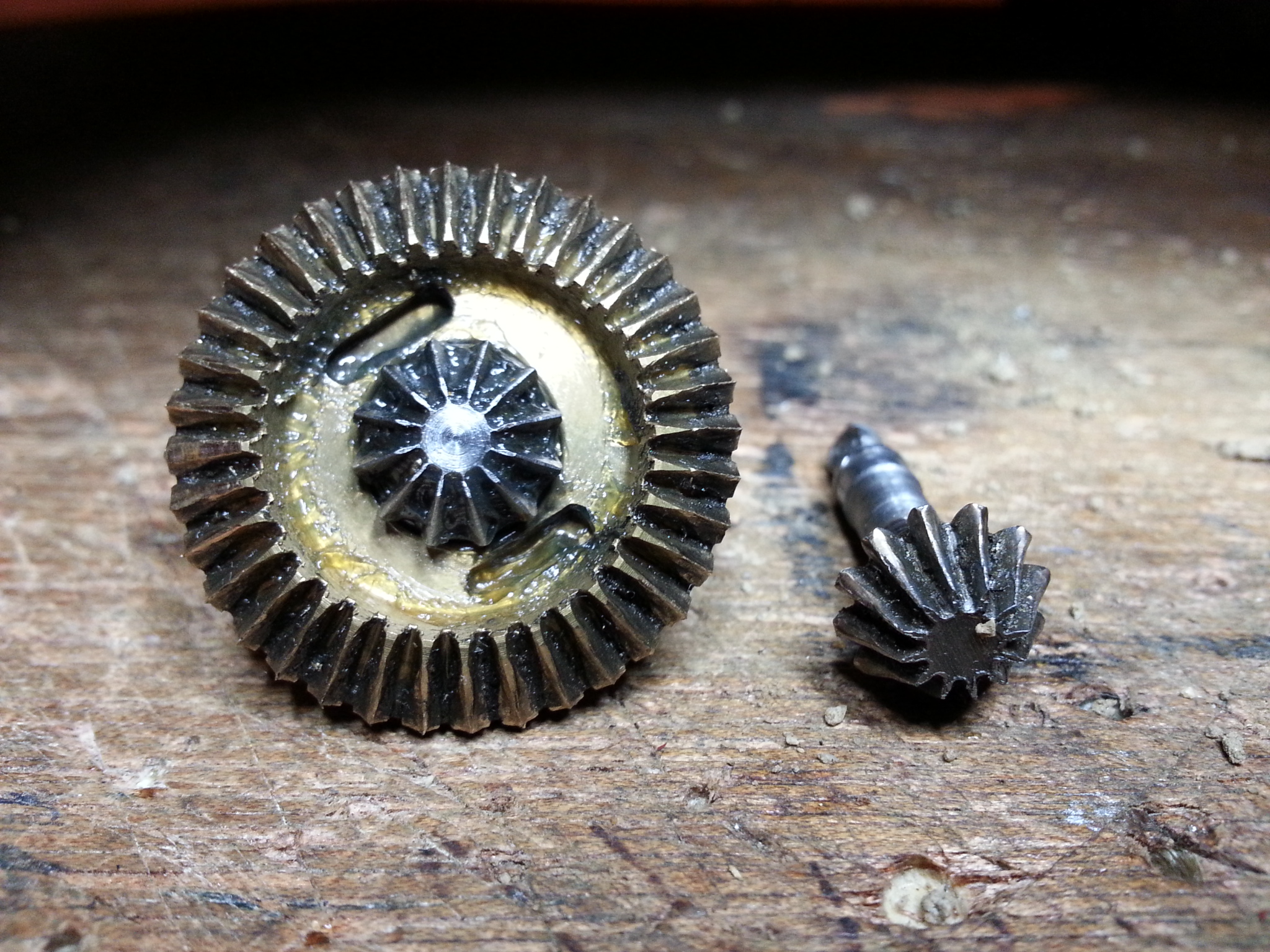 Pour revenir sur le différentiel que j'ai mis plus haut, la couronne et le pignon se trouvent en pièces détachées. La réduction est de 1:2.78 contre 1:3. Si j'en fait un, il faudra faire les autres :happy1: . Donc l'idée serait d' usiner la couronne actuelle et de la remplacer par la nouvelle. Les dents font 3mm de large contre 5.5mm. Es gênant?