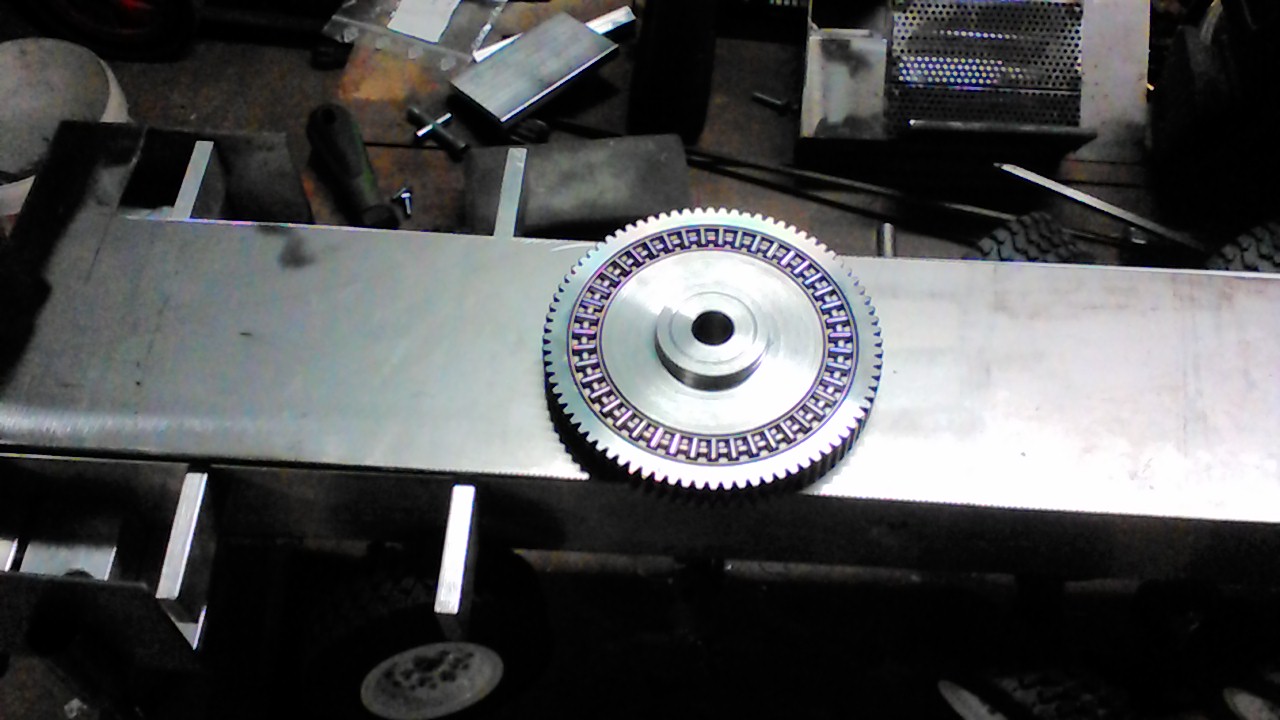 Voilà quelque nouvelle de l avancement de ma grue , j ai acheter vendredi les servo qui serviron à la direction des essieux 20 et 25kg de force , la direction saverre complexe mais sa va être intéressant de trouvé la solution .j'ai fini la pose des cardan, de la boîte de réduction 4/1 entre les boîtes de transfert et le moteur , j ai aussi trouvé ma couronne dente et mes roulement pour ma tourelle , voilà quelque photos