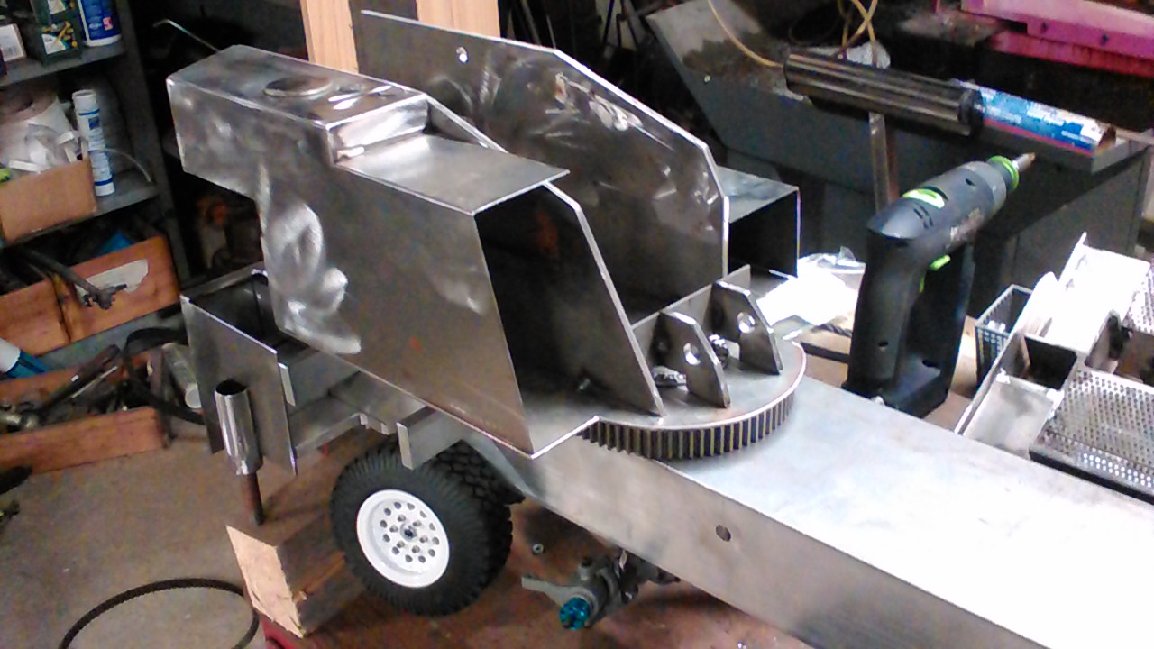 Et début des capots de la tourelle qui vont permettre de caché tous le système électrique et hydraulique
