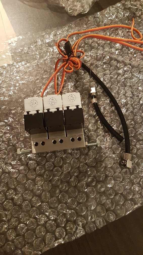 - 1 Distributeur 6 voies avec sa vanne de régulation de pression incluse et ses 66 adaptateurs servos; il s'agit de la version corrigée de Lesu suite aux problèmes rencontrés avec le modèle d'origine; c'est du M5 mais peut passer en M3 si on met des des réducteurs. Il est neuf et encore dans son sachet : 310€ FDPI