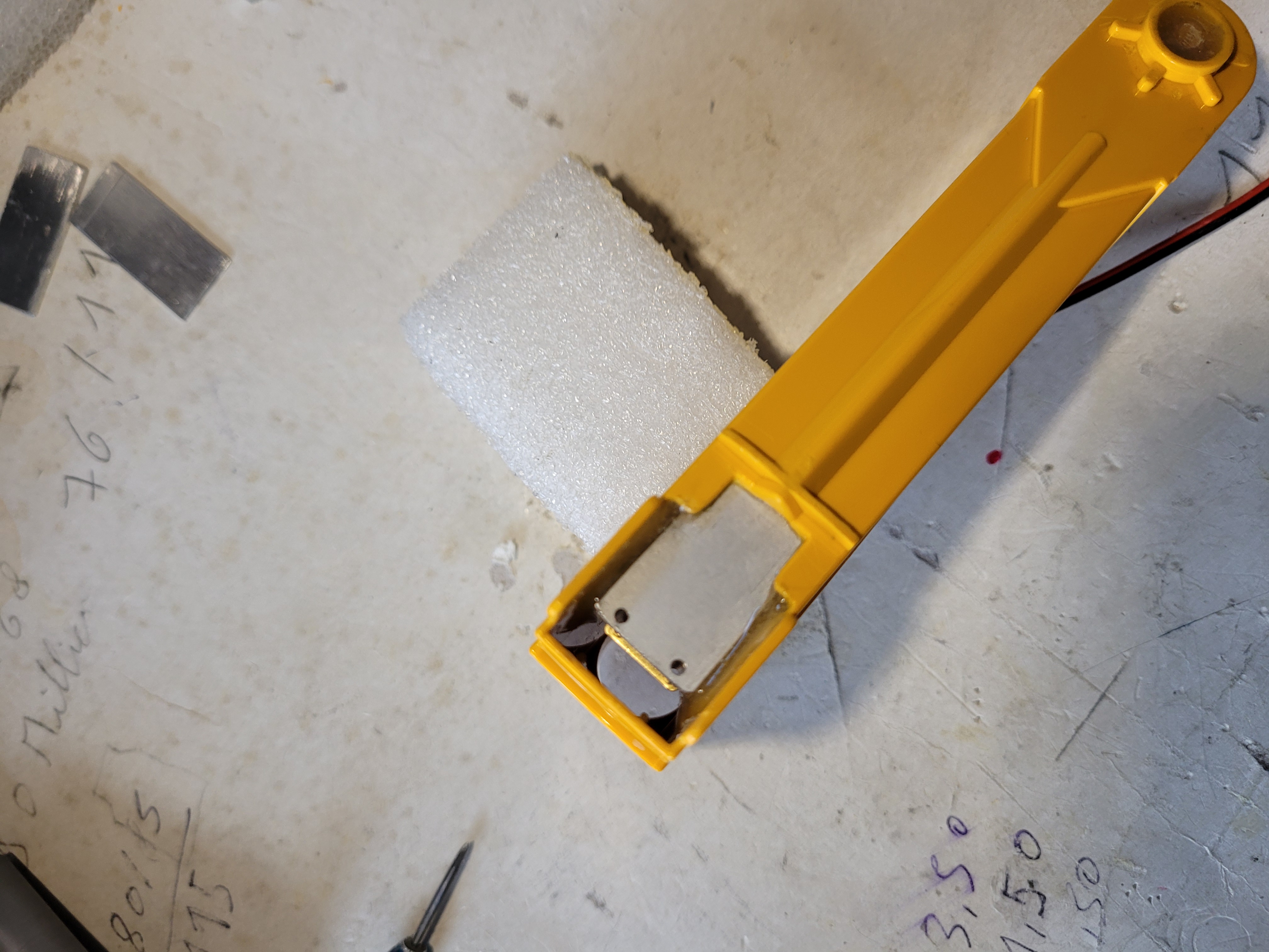 Sur la photo le tube carré support dans lequel je place le N20 avec tige filetée en M3 que j'ai fais pour le pied, mais avec sa j'ai que 25/30mm de course...Ce que j'aimerai c'est qu'il remonte plus...
