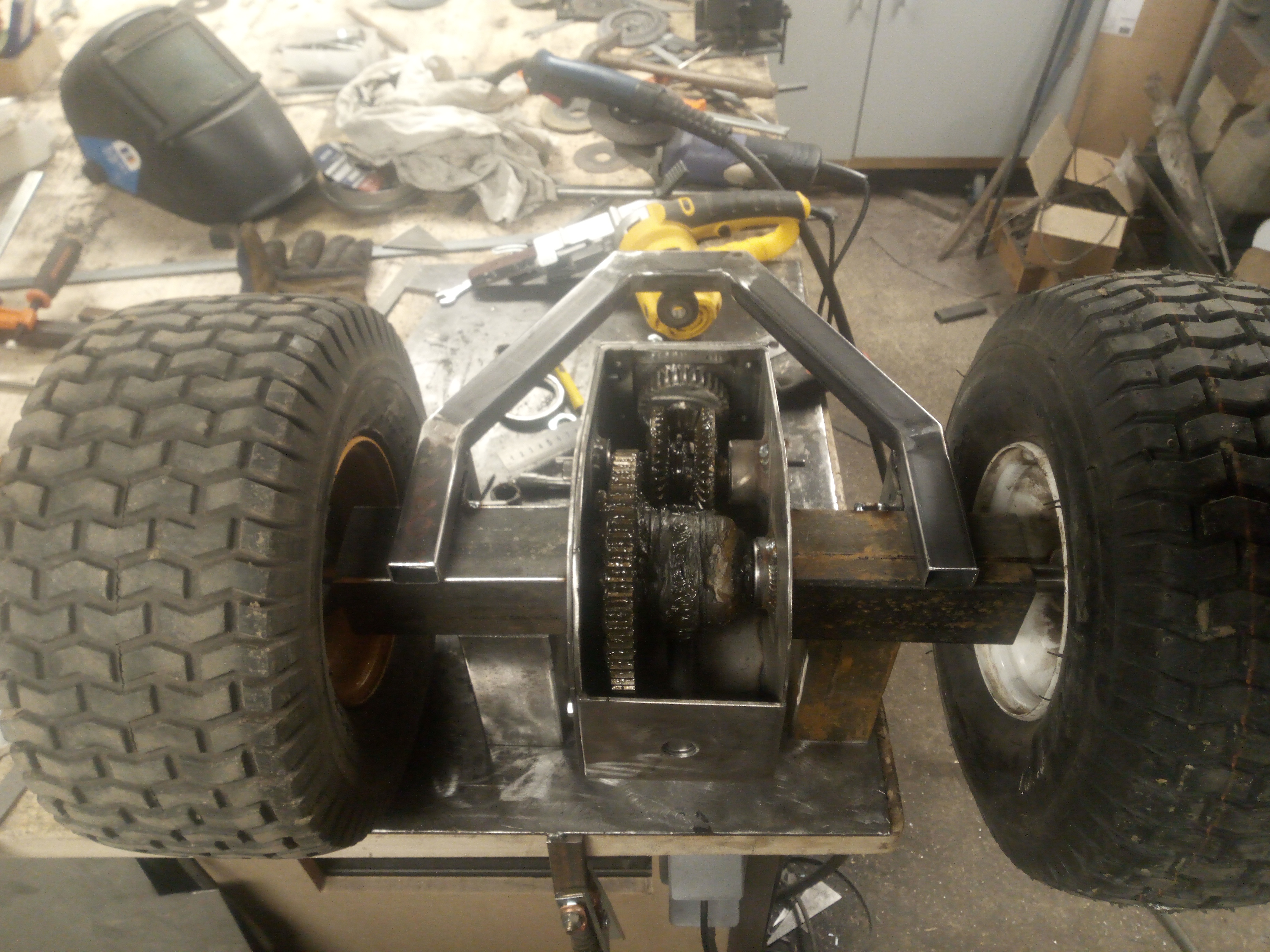 Et l inversion se fera directement sur les ponts car j ai chiné des ponts ar de tondeuse autoportée 3 pont MTD tous vont être depiotez pour récupérer toutes la pignonnerie et arbre et je vais reconstruire tous le carter du pont pour les transformer en pont qui s accouple les un au autres ::d