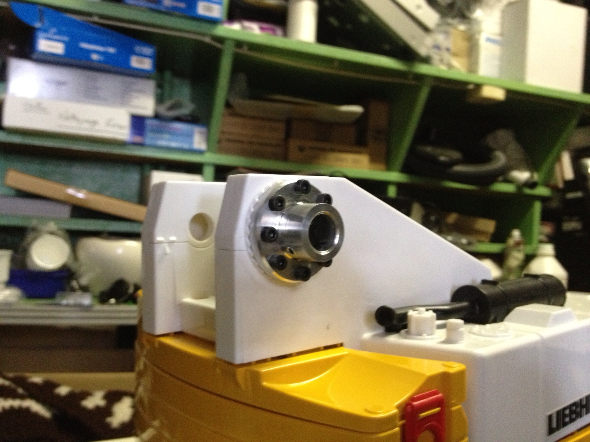 bon voila ce soir j ai presque fini le treuil ! me suis bien fait suer :evil: et me reste une pièce a faire une bague pour soulagé l axe moteur 8o(